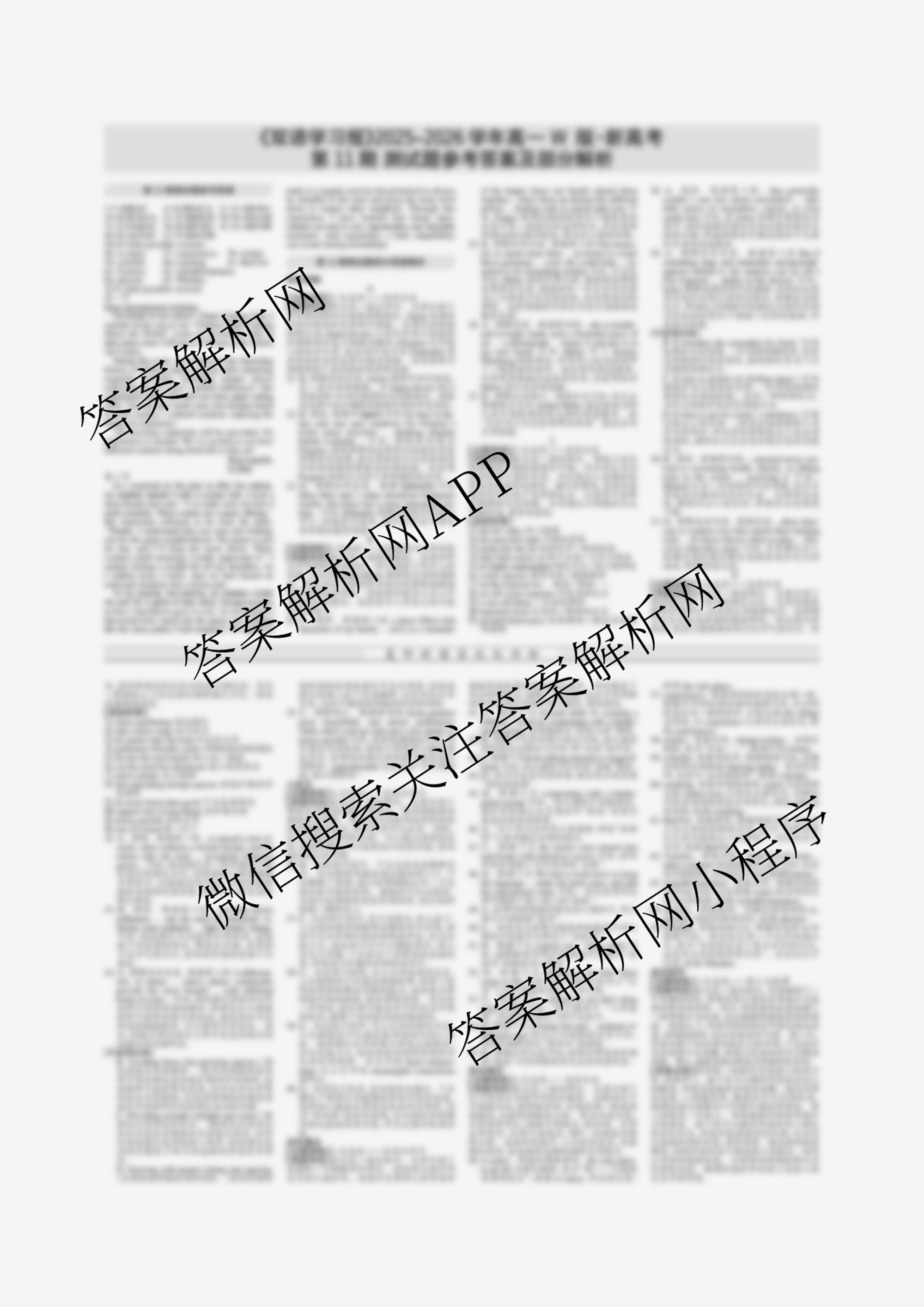 2025-2026 双语学习报 高一 W版新高考第11期答案