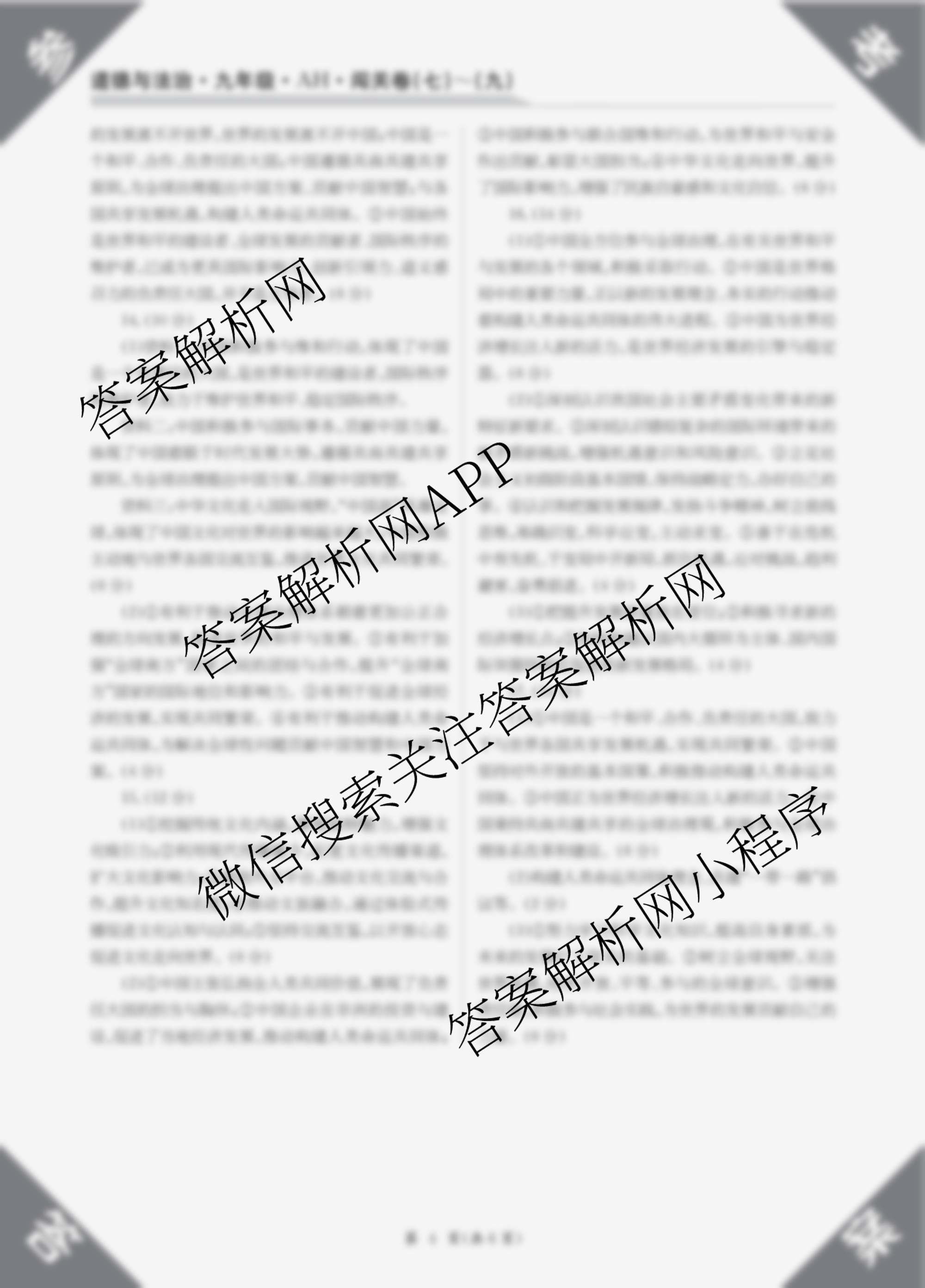 2025-2026 闯关卷 九年级 道德与法治(AH)(八)8答案,目前学英语报答案已经汇总了2025-2026 闯关卷 九年级 道德与法治(AH)(八)8答案的各科答案和试卷,获取更多闯关卷答案解析,请在关注本站。