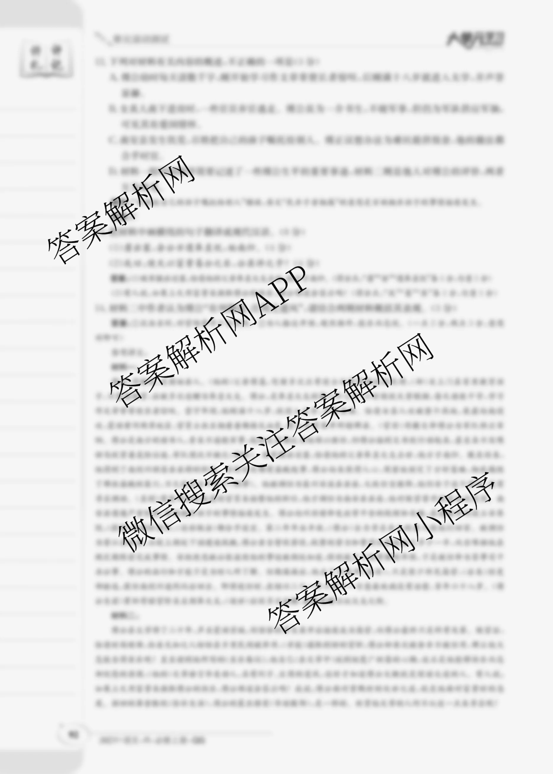 2026·单元测试示范卷·语文[26DY·语文·R-必修上册-QG](十一)11答案,目前学英语报答案已经汇总了2026·单元测试示范卷·语文[26DY·语文·R-必修上册-QG](十一)11答案的各科答案和试卷,获取更多金太阳100所名校答案解析,请在关注本站。