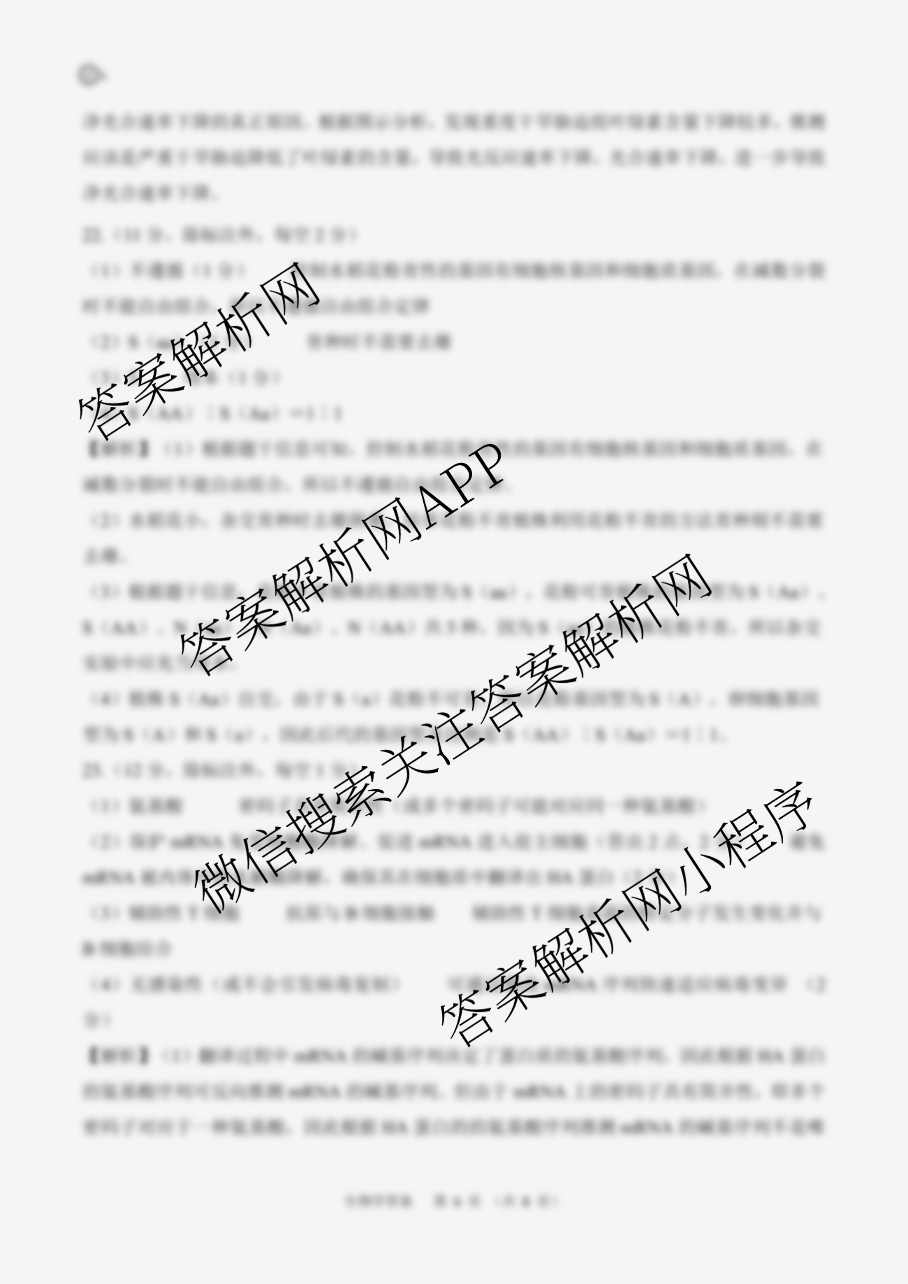 - (百师联盟)2026届[高三]年级1月联考(1.21)生物(百N)答案