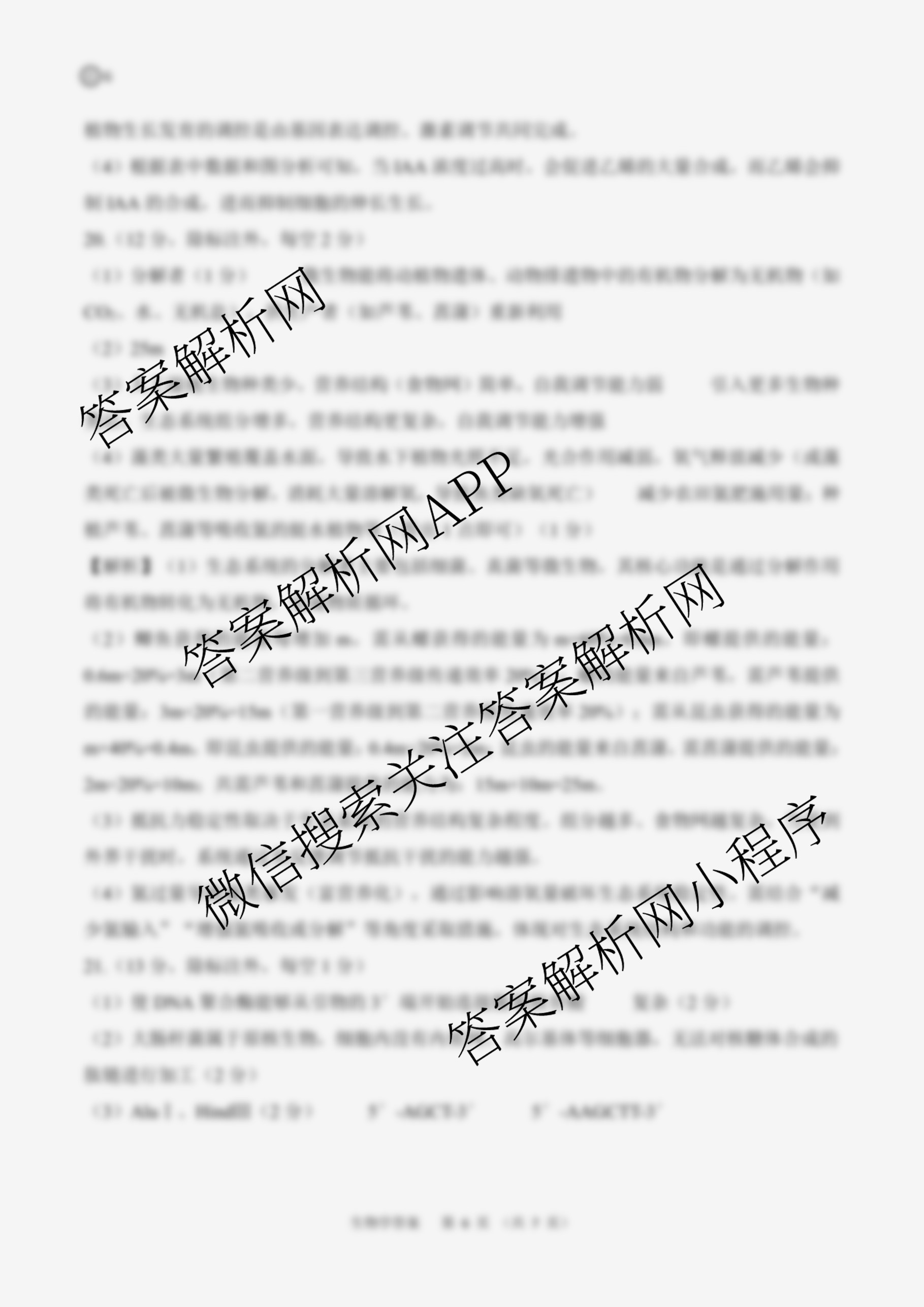 - (百师联盟)2026届[高三]年级1月联考(1.21)生物(百N)答案