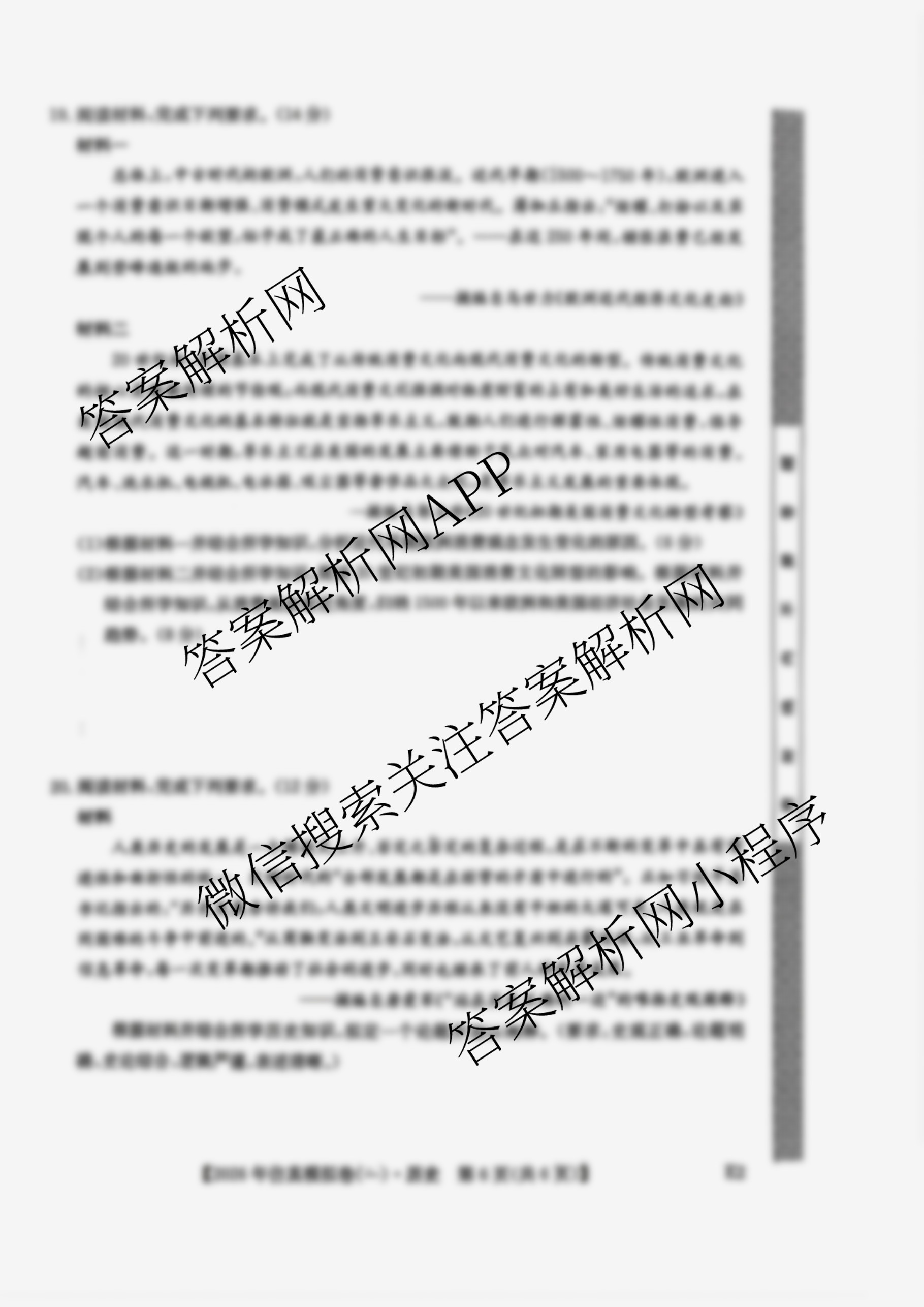- [高三]2026年普通高中学业水平选择性考试仿真模拟卷(一)1历史(河南)答案