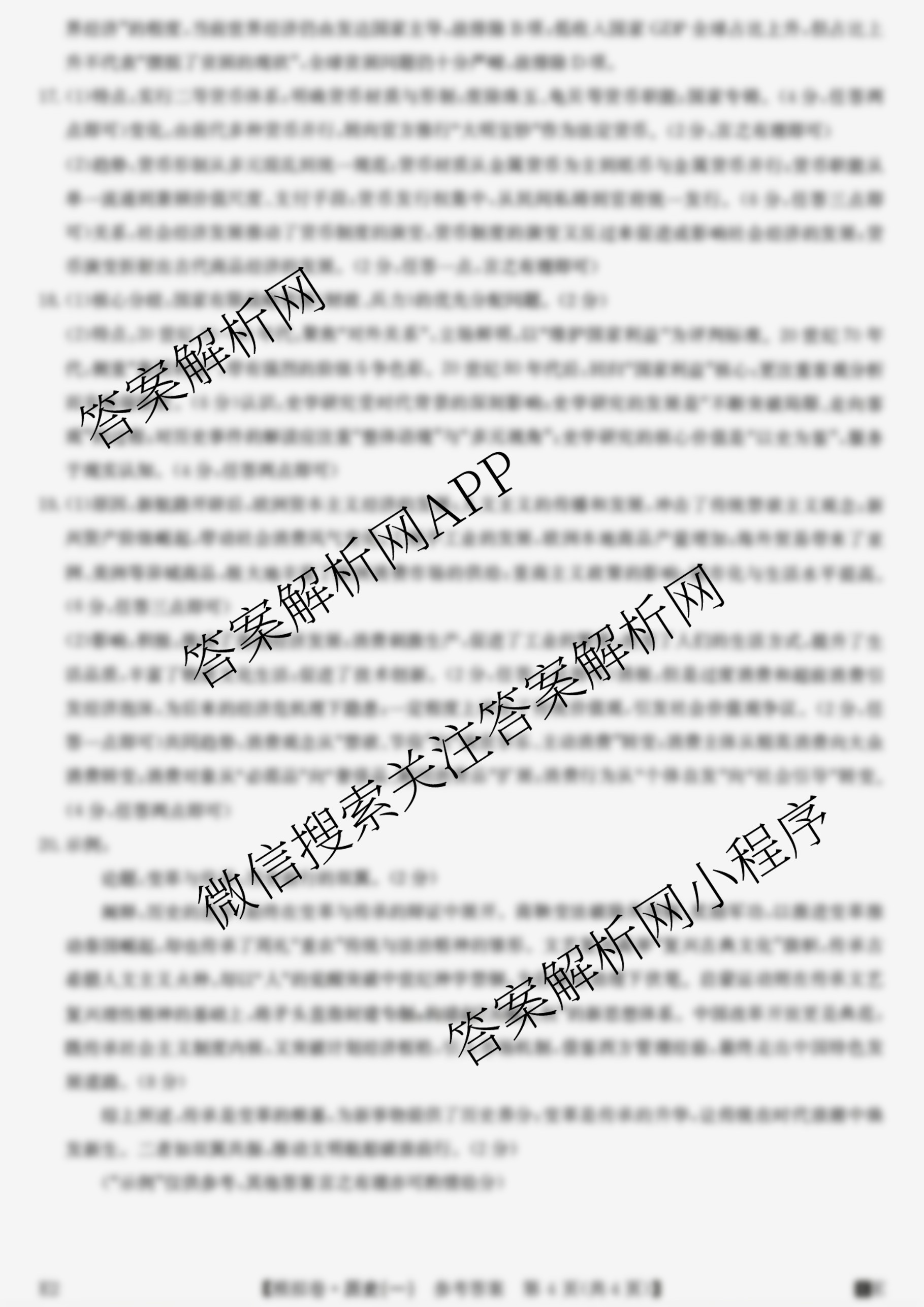 - [高三]2026年普通高中学业水平选择性考试仿真模拟卷(一)1历史(河南)答案