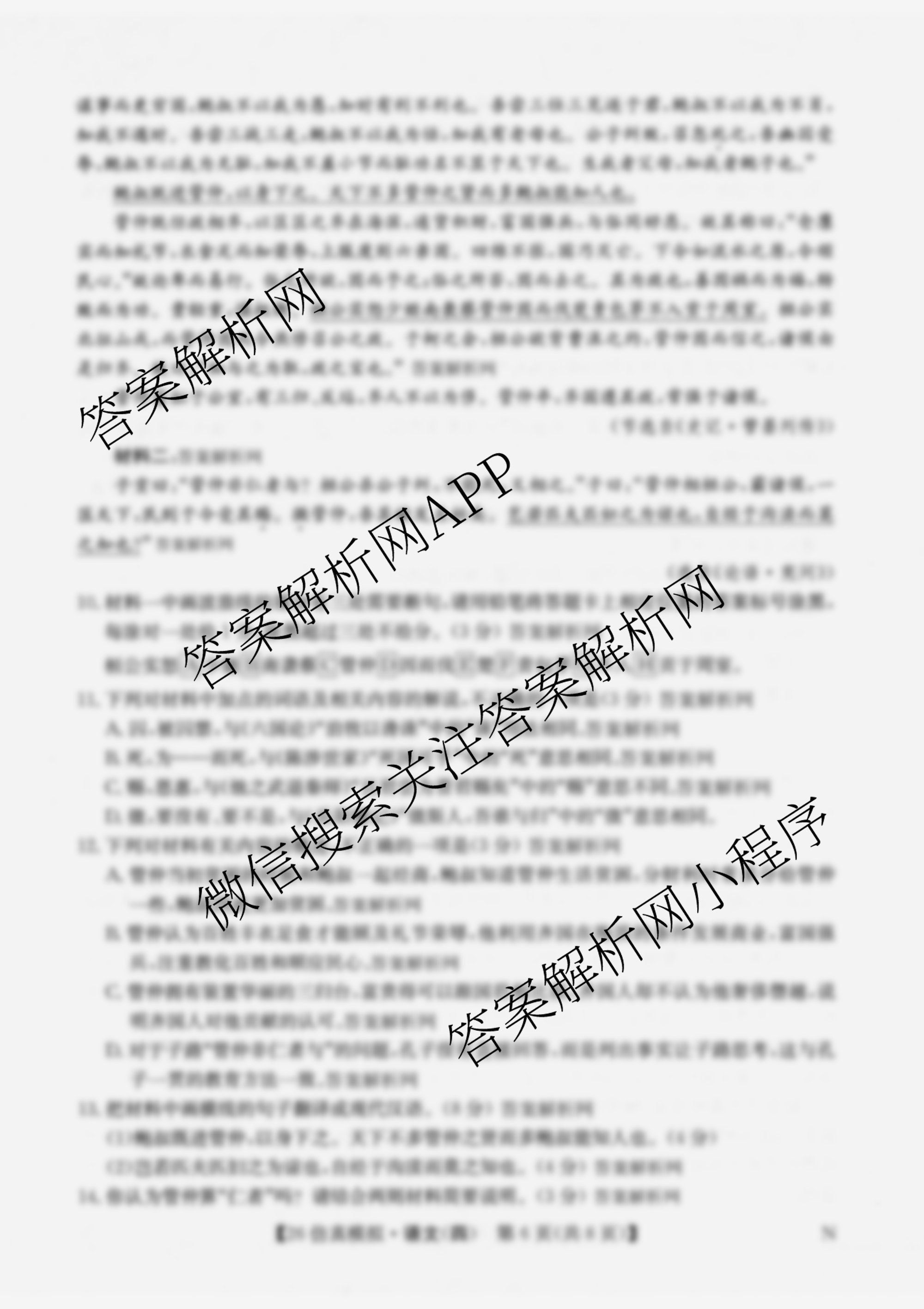 - [高三]2026年[全国高考·仿真模拟卷](四)4语文(N)答案