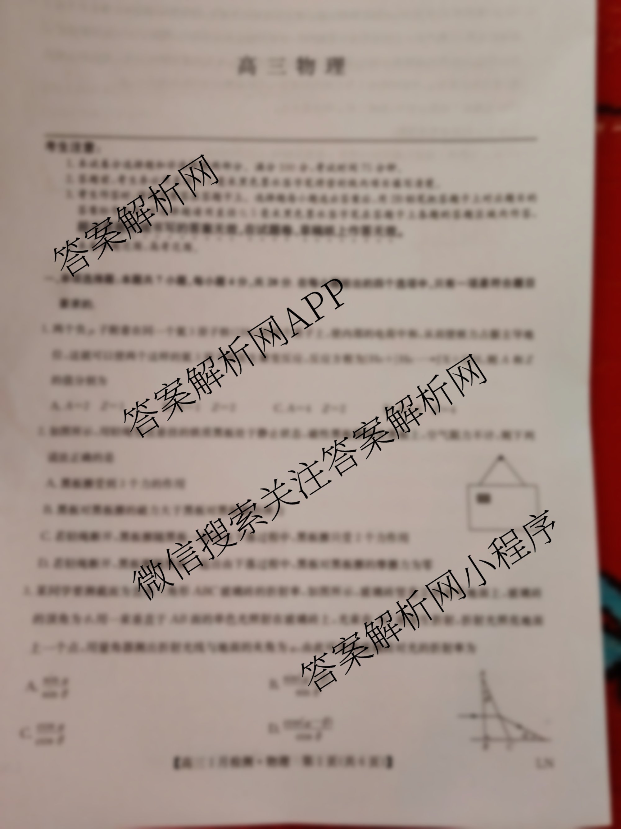 - 2026届[高三][九师联盟]·1月检测(1.21)物理(LN)试题