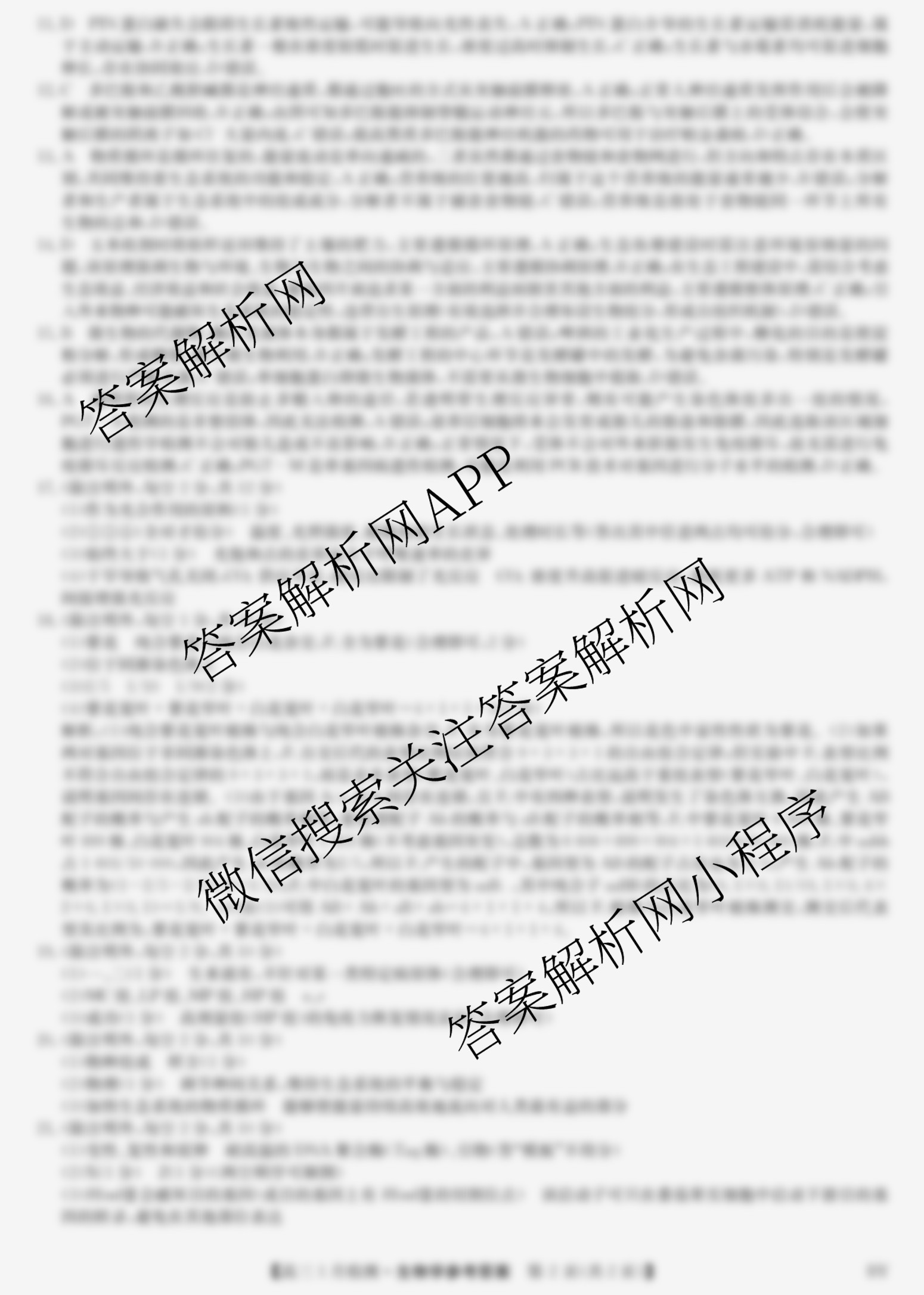 - 2026届[高三](九师联盟)·1月检测(1.21)生物(WW)答案