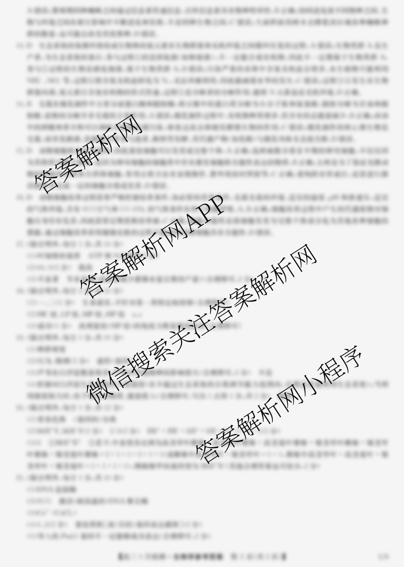 - 2026届[高三](九师联盟)·1月检测(1.21)生物(WW)答案