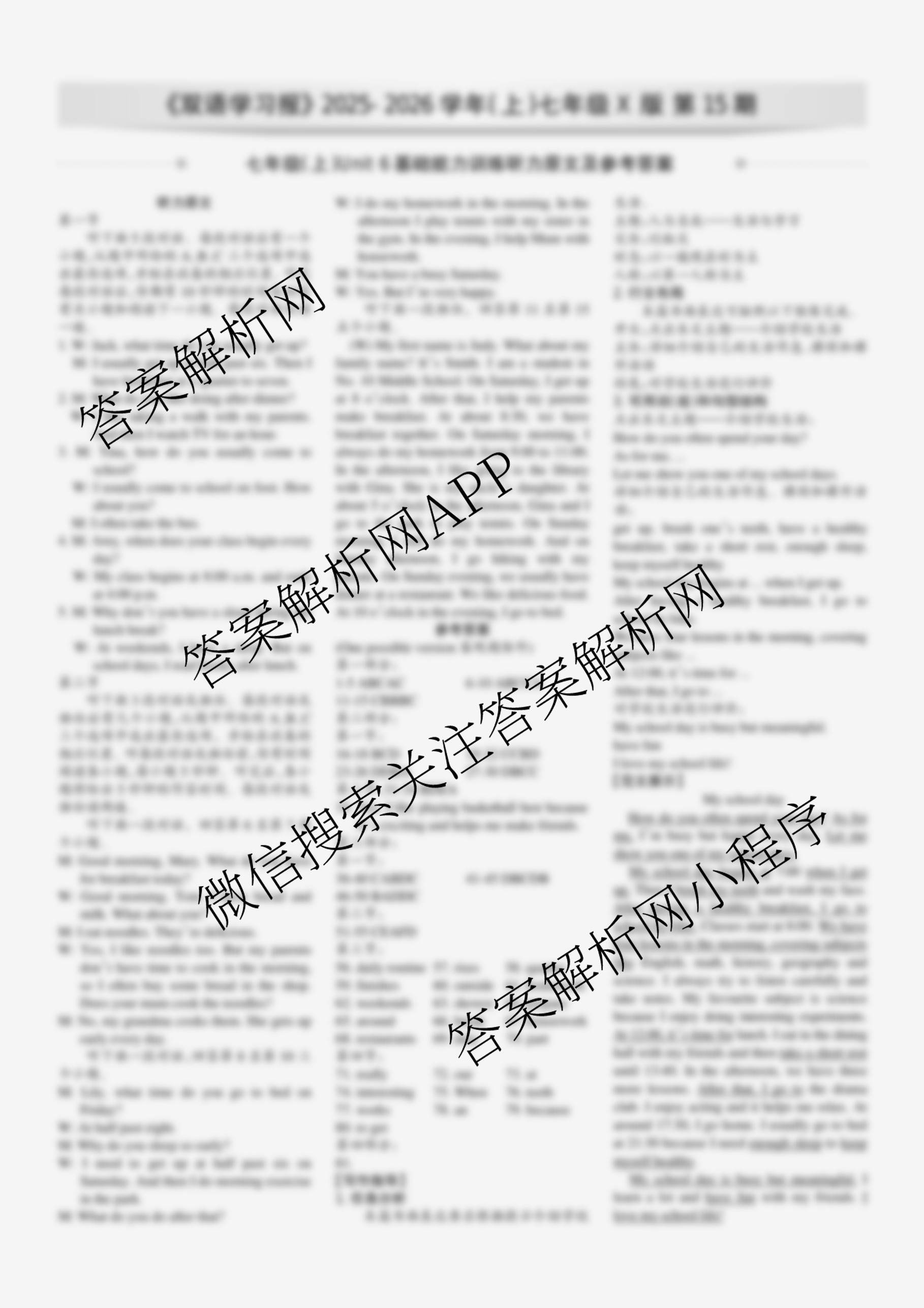2025-2026 双语学习报 七年级 X版第15期答案