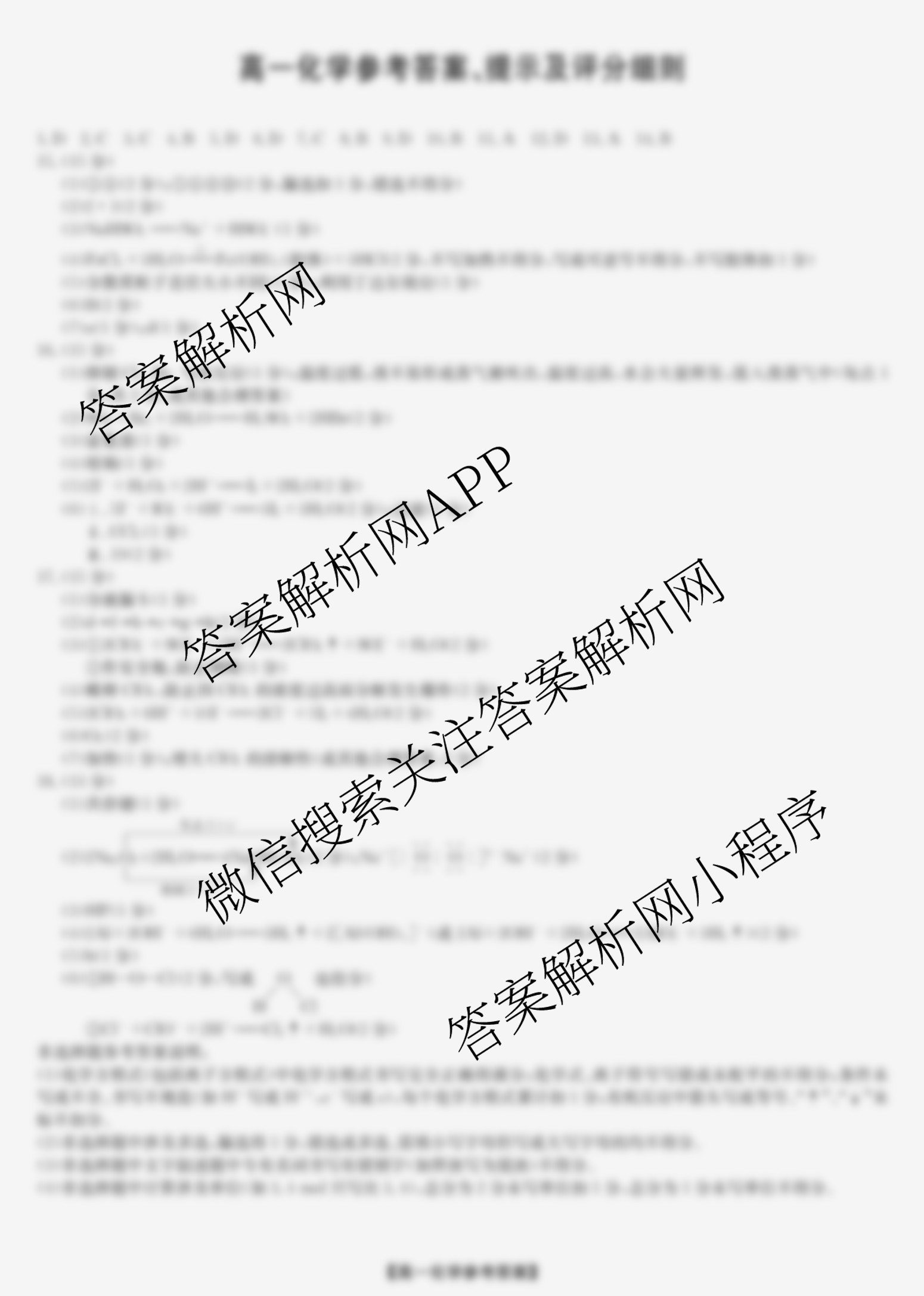 - 2025-2026[高一]九师联盟河北省保定市六校联考学年上学期1月期末考试(无标题)化学答案