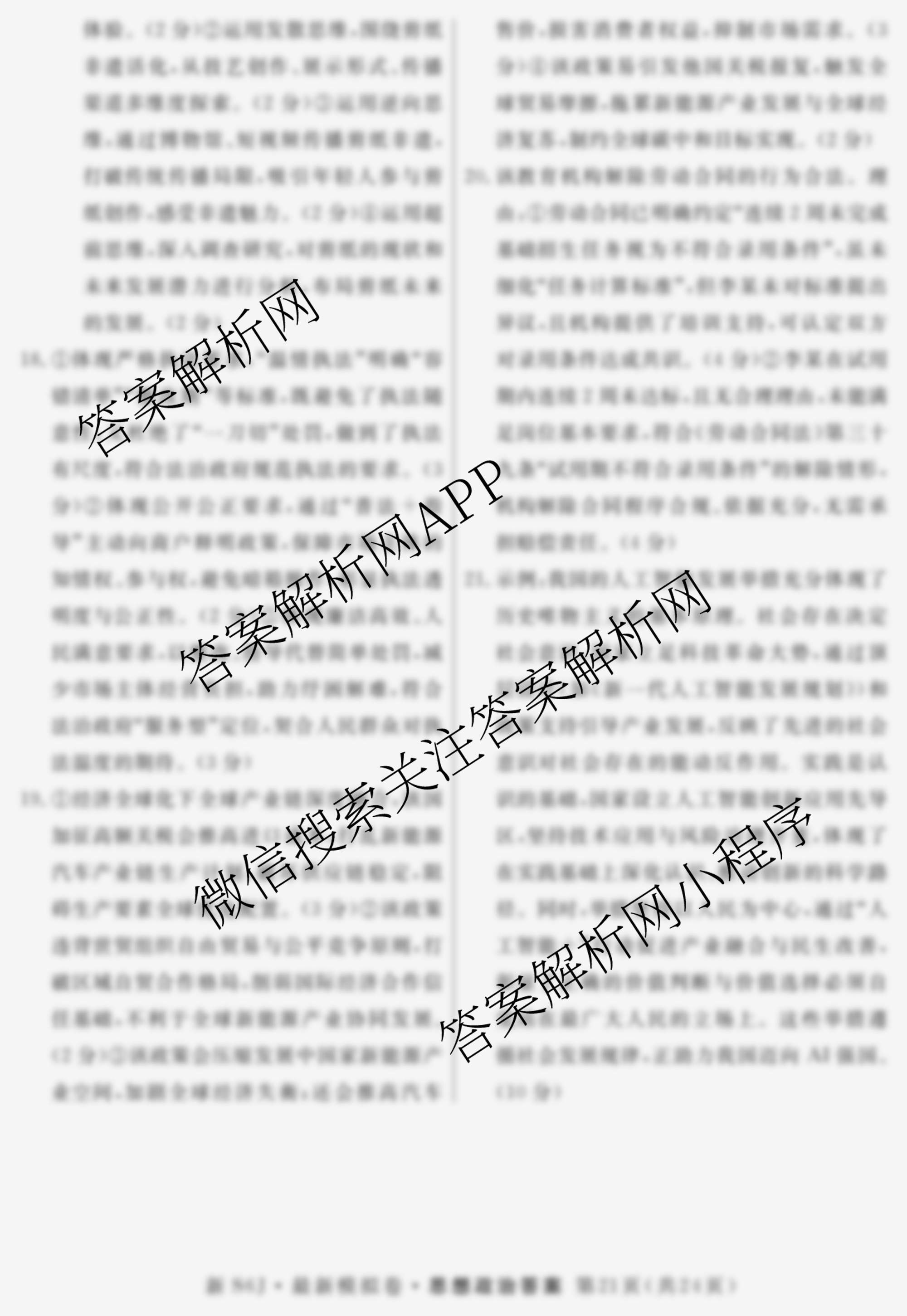 - 2026年普通高等学校招生统一考试最新模拟卷(五)5政治(HJL6)答案