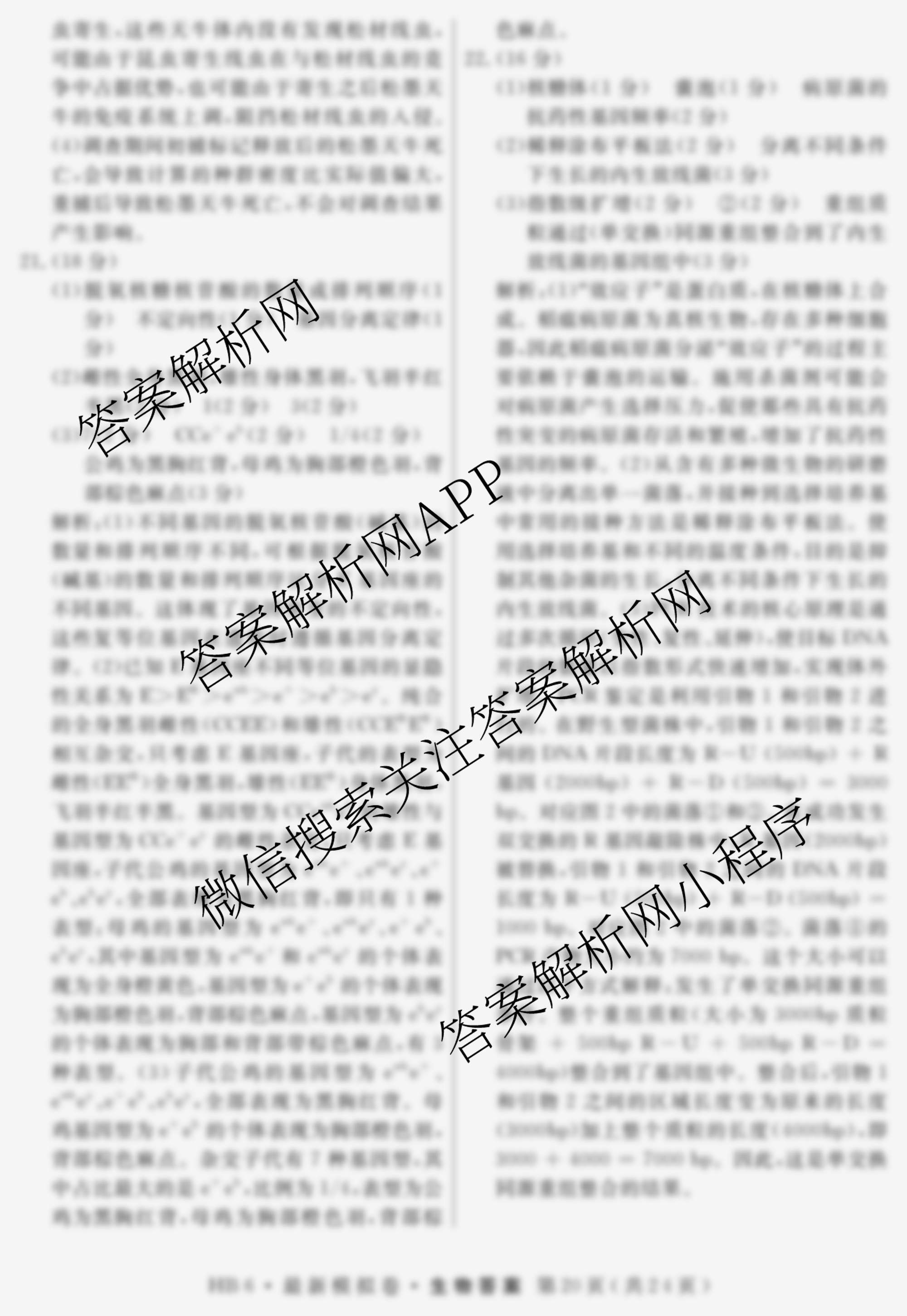 - [高三]2026年普通高等学校招生统一考试·最新模拟卷(五)5生物(HJL6)答案