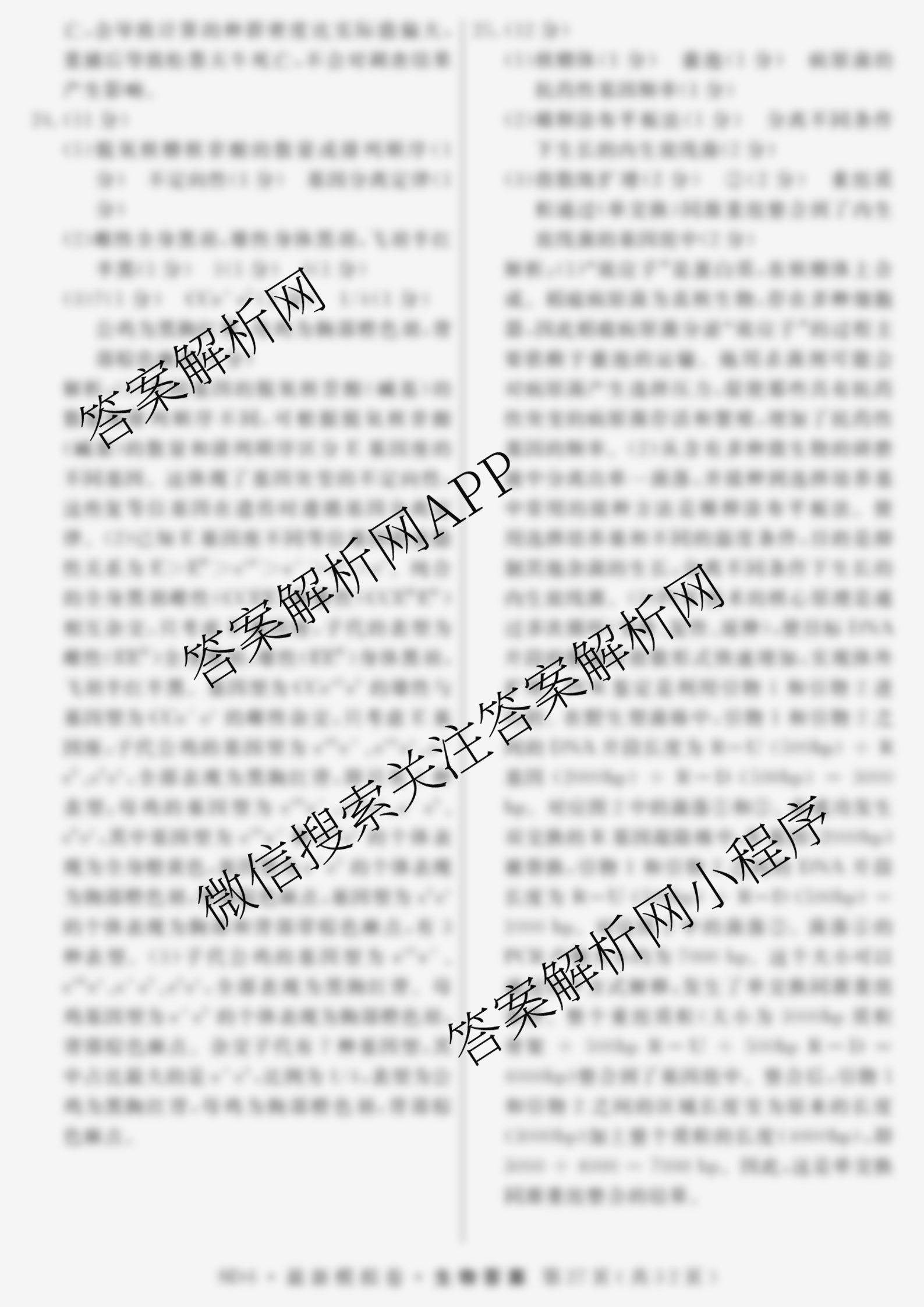 - [高三]2026年普通高等学校招生统一考试·最新模拟卷(五)5生物(XS6J)答案