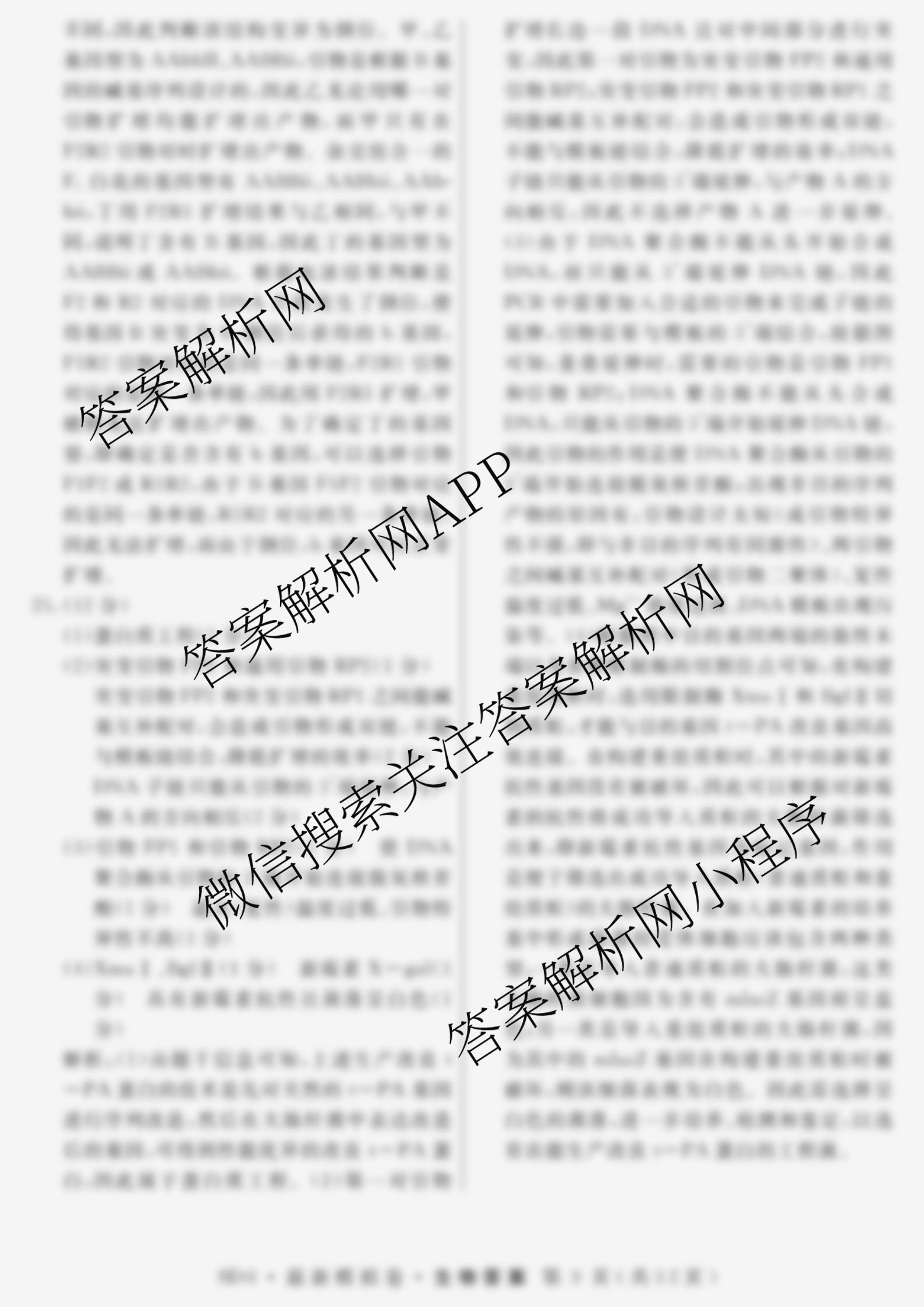 - (高三)2026年普通高等学校招生统一考试·最新模拟卷(二)2生物(HN6)答案