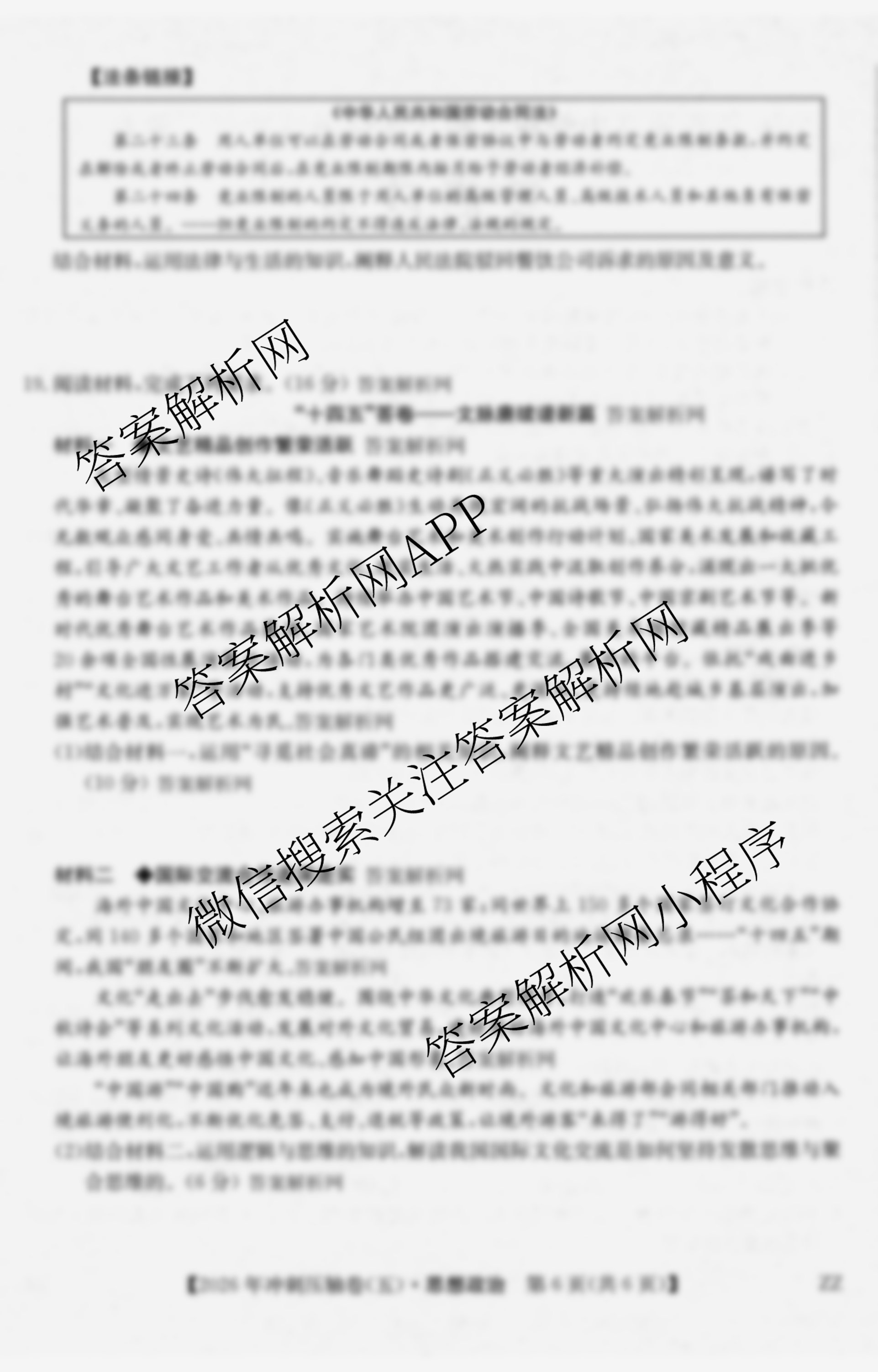 - [高三]2026年四川省普通高中学业水平选择性考试冲刺压轴卷(五)5政治(四川)答案