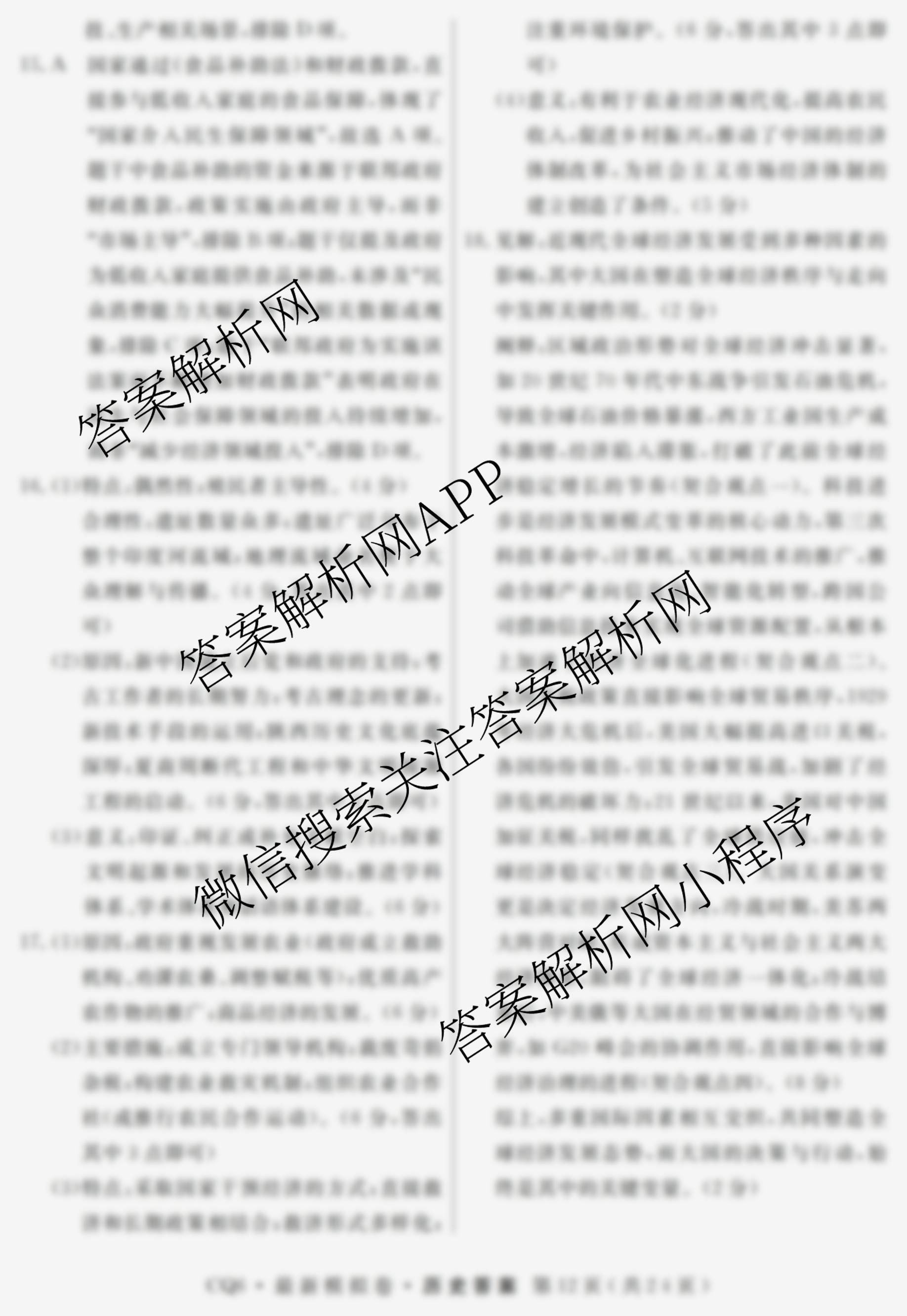 - 2026年普通高等学校招生统一考试·最新模拟卷(三)3历史(HB6)答案