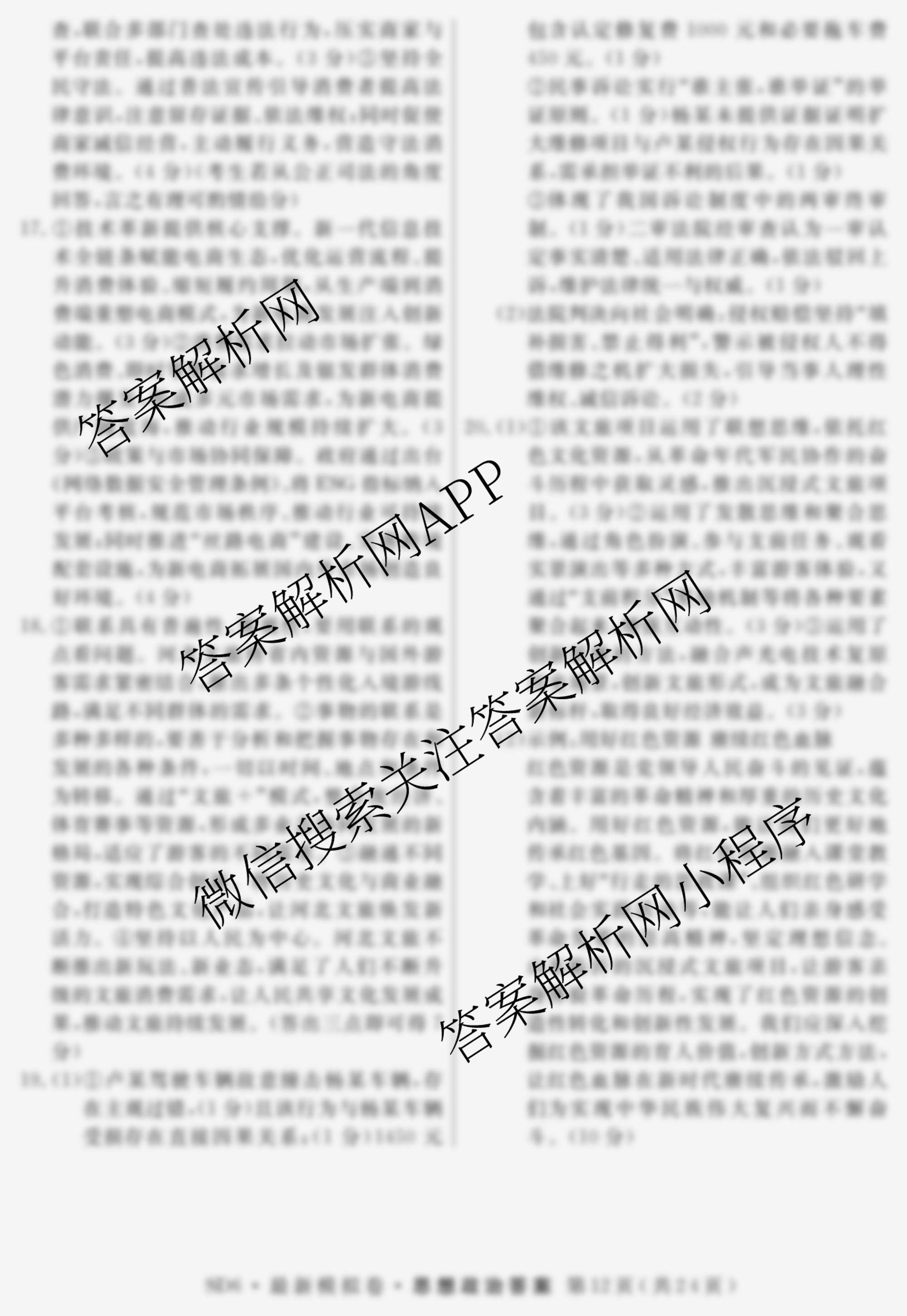 - 2026年普通高等学校招生统一考试最新模拟卷(三)3政治(HEN6)答案
