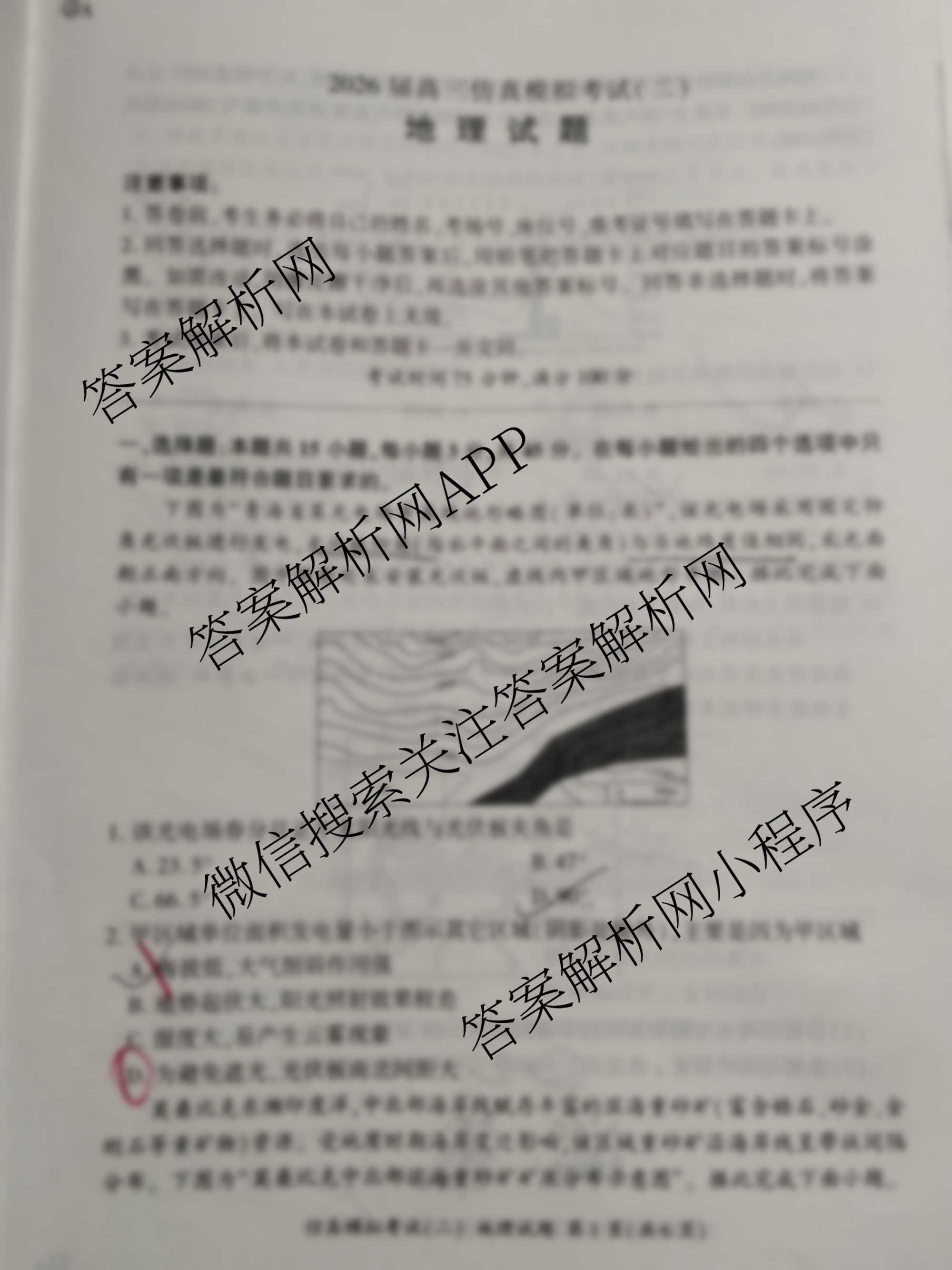 - (高三)[百师联盟]·2026届仿真模拟考试(二)2地理(百G)答案
