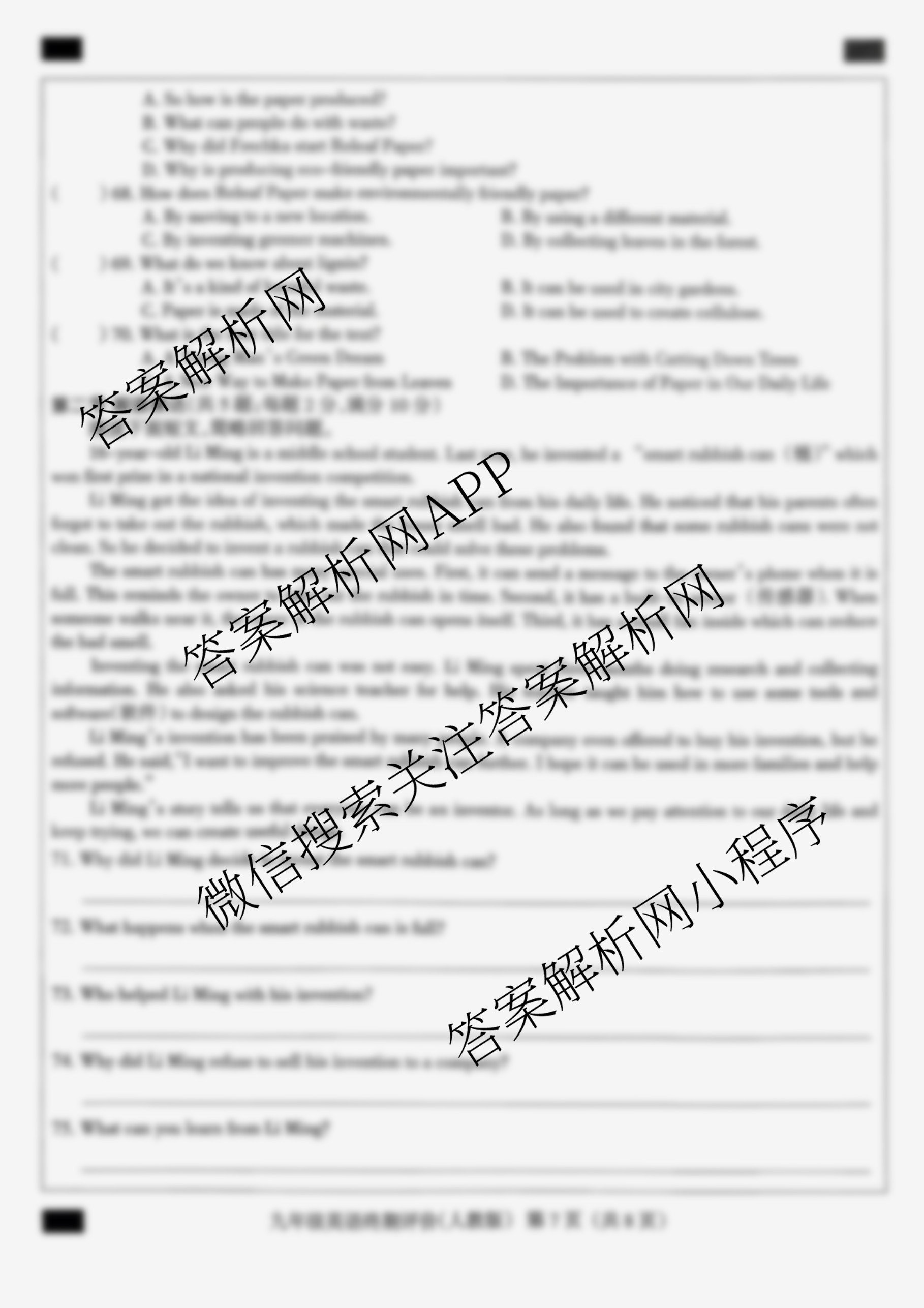 河北省2025-2026学年第一学期九年级学业水平终期评价英语(人教版)试题,目前学英语报答案已经汇总了河北省2025-2026学年第一学期九年级学业水平终期评价英语(人教版)试题的各科答案和试卷,获取更多地方模拟答案解析,请在关注本站。