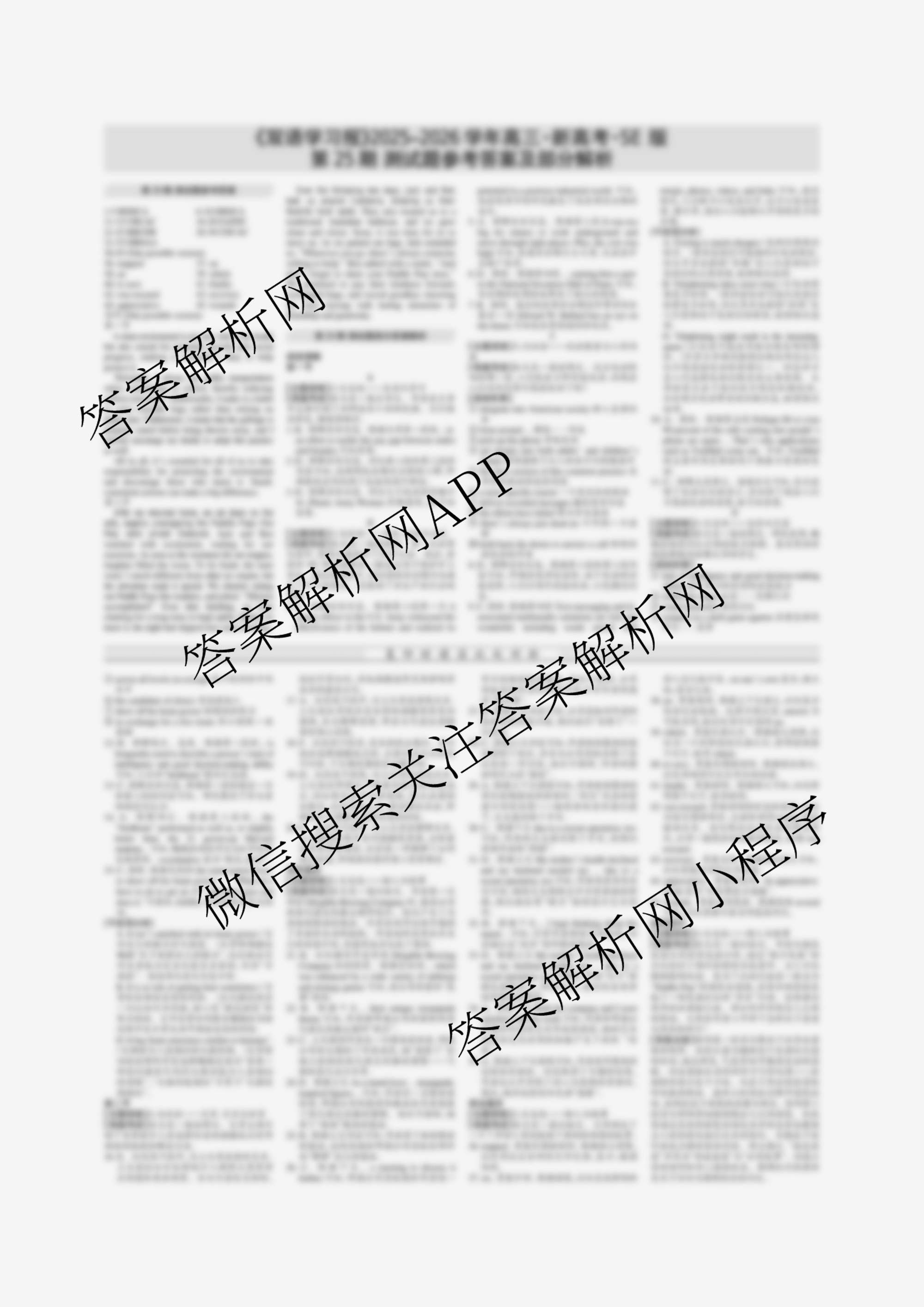 双语学习报 2025-2026学年上学期 高三 新高考SE版 第25期答案