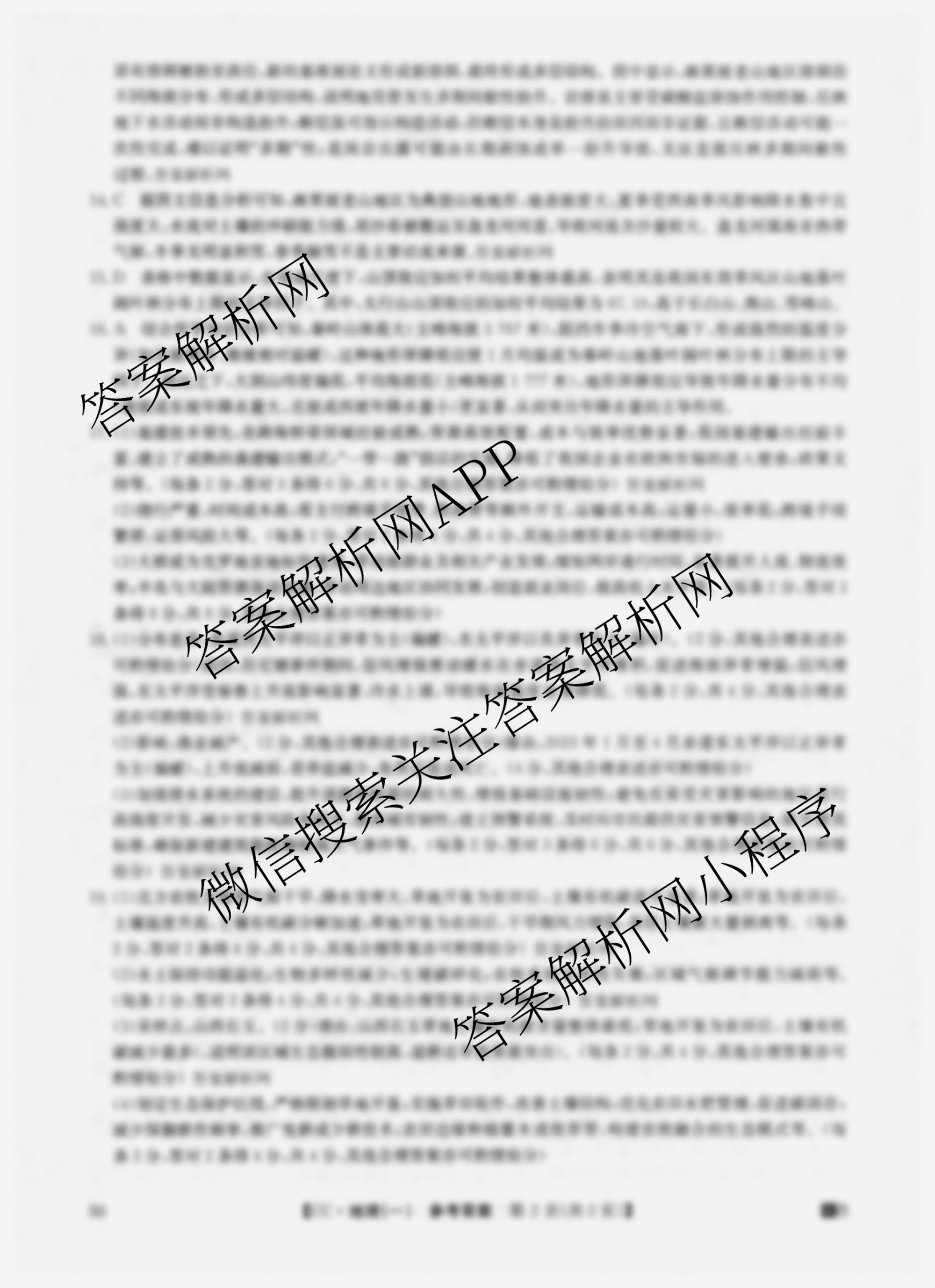 - [高三]2026年四川省普通高中学业水平选择性考试冲刺压轴卷(一)1地理(四川)答案