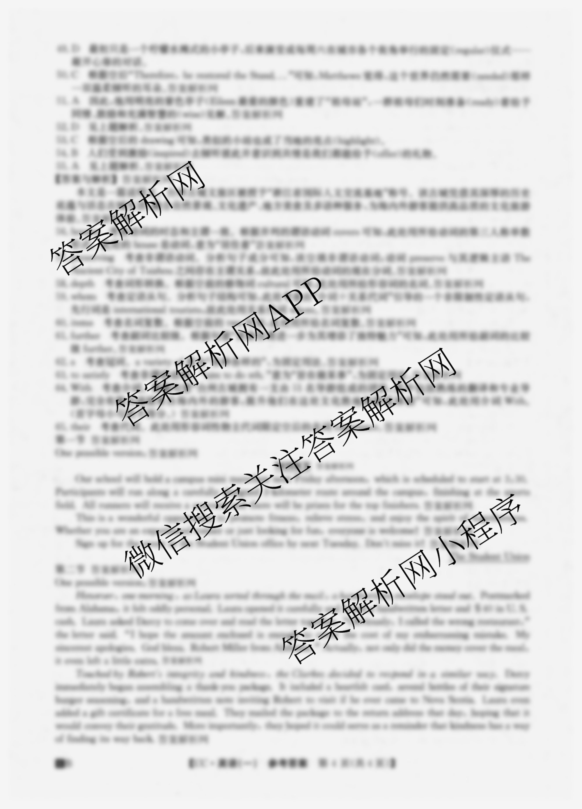 - 高三2026年[全国高考冲刺压轴卷](一)1英语答案
