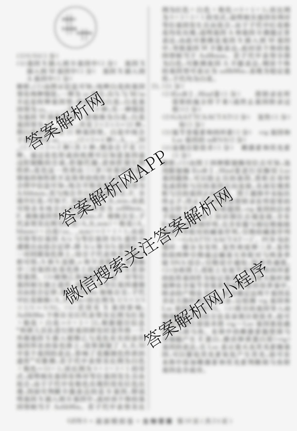 - [高三]2026年普通高等学校招生统一考试·最新模拟卷(四)4生物(XS6J)答案