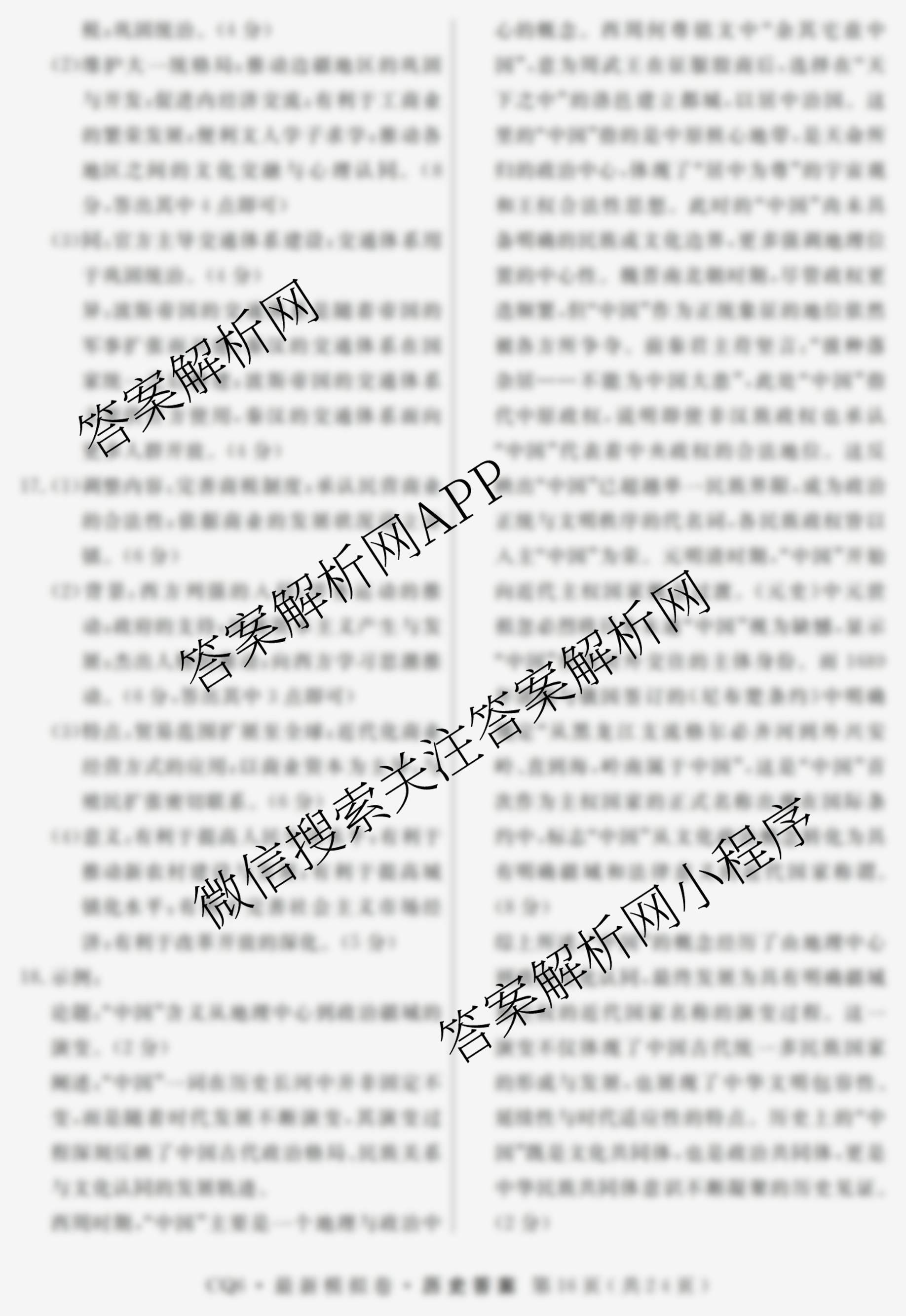 - 2026年普通高等学校招生统一考试最新模拟卷(四)4历史(HB6)答案