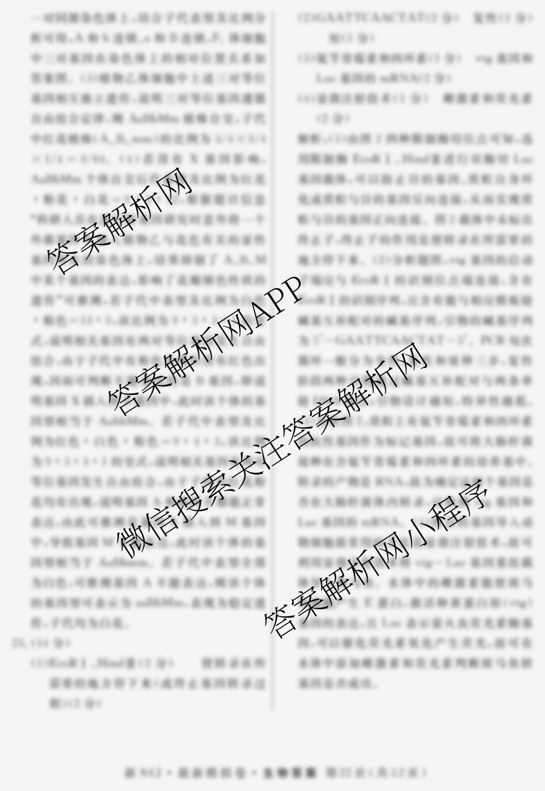 - [高三]2026年普通高等学校招生统一考试·最新模拟卷(四)4生物(XS6J)答案
