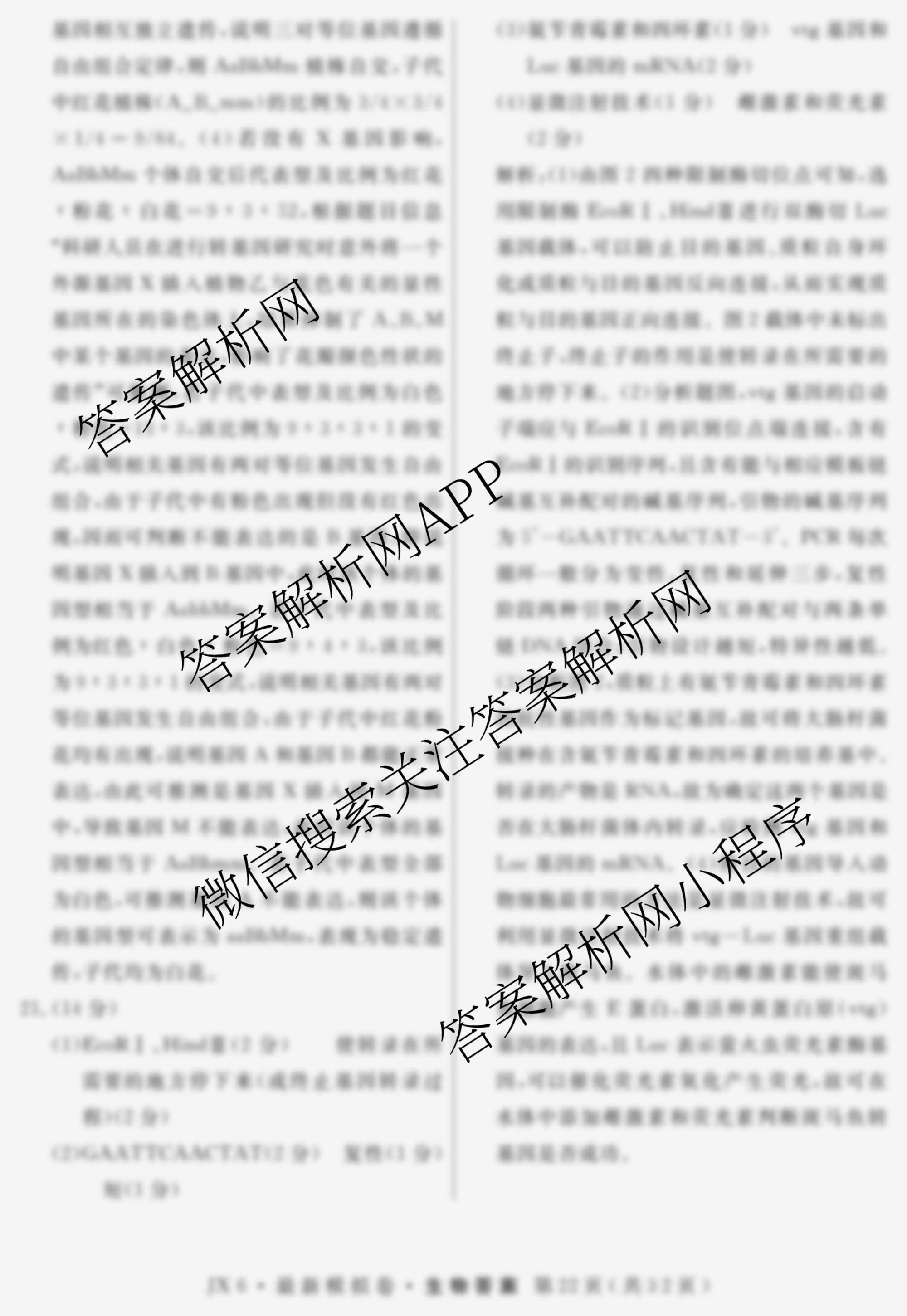 - (高三)2026年普通高等学校招生统一考试·最新模拟卷(四)4生物(JX6)答案
