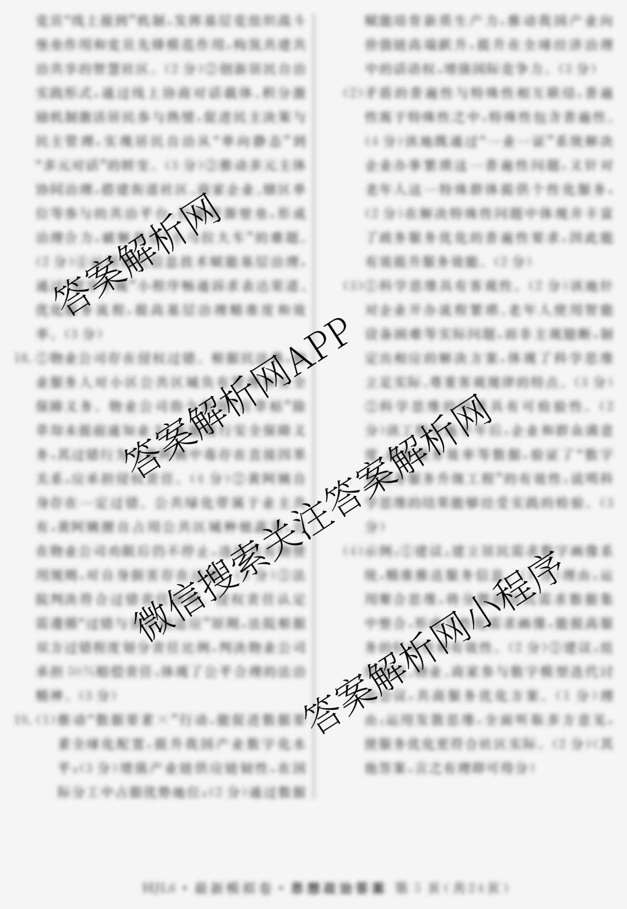 - [高三]2026年普通高等学校招生统一考试·最新模拟卷(一)1政治(HEN6)答案
