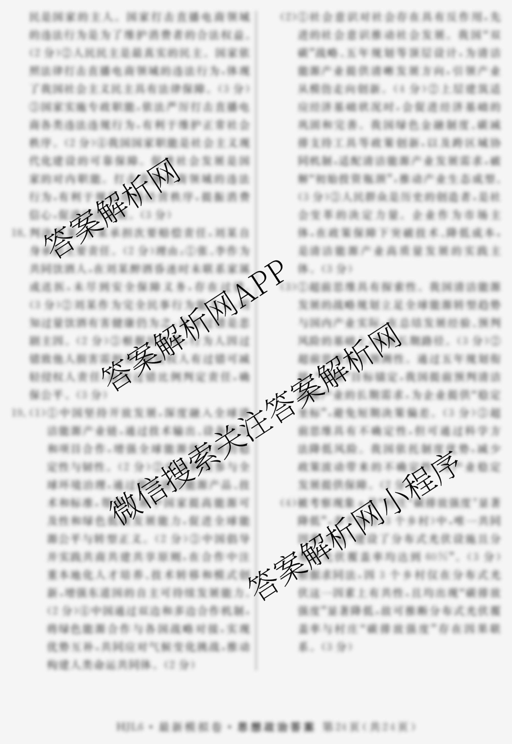 - [高三]2026年普通高等学校招生统一考试·最新模拟卷(六)6政治(HEN6)答案