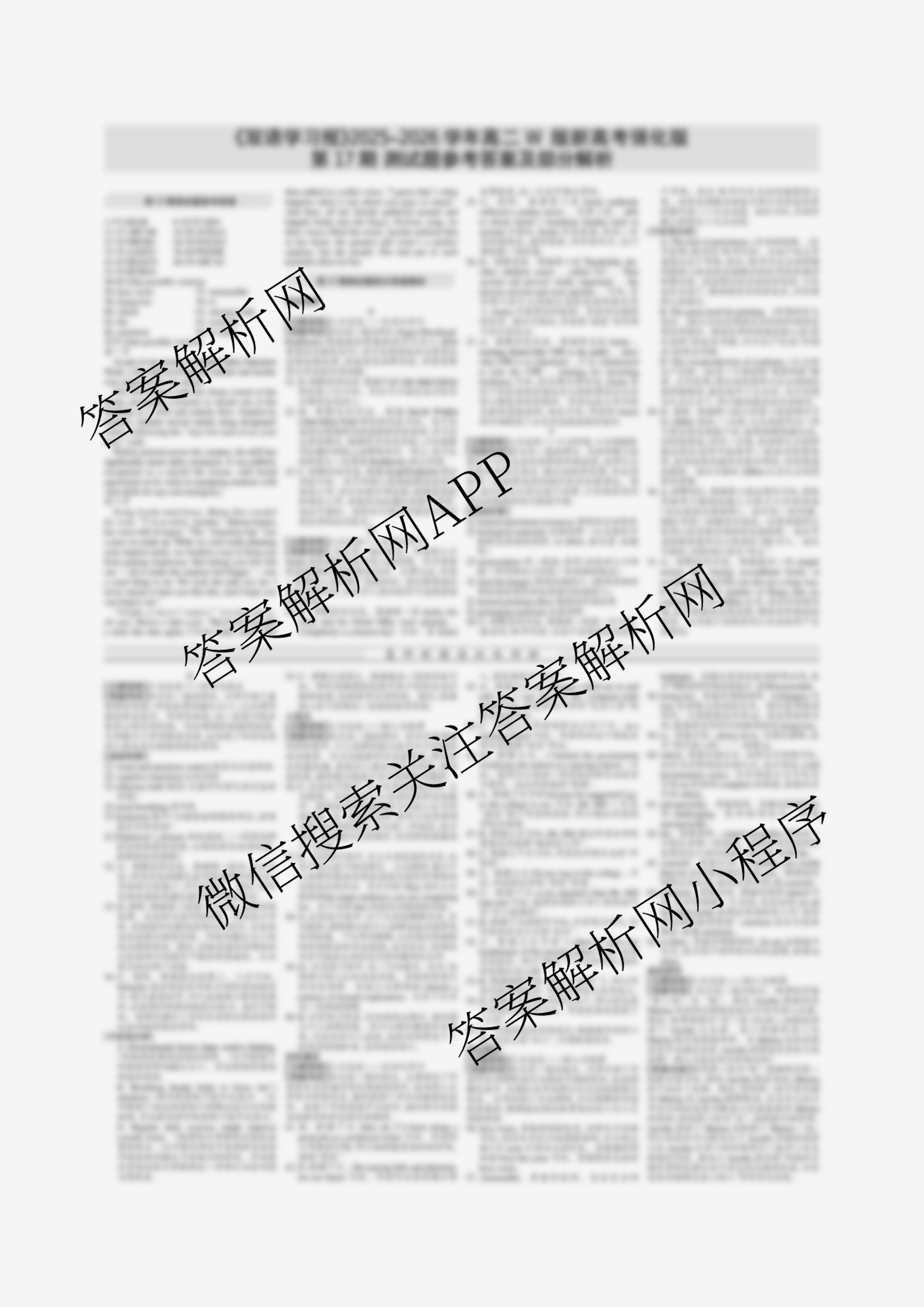 2025-2026 双语学习报 高二 W版新高考强化版第17期答案