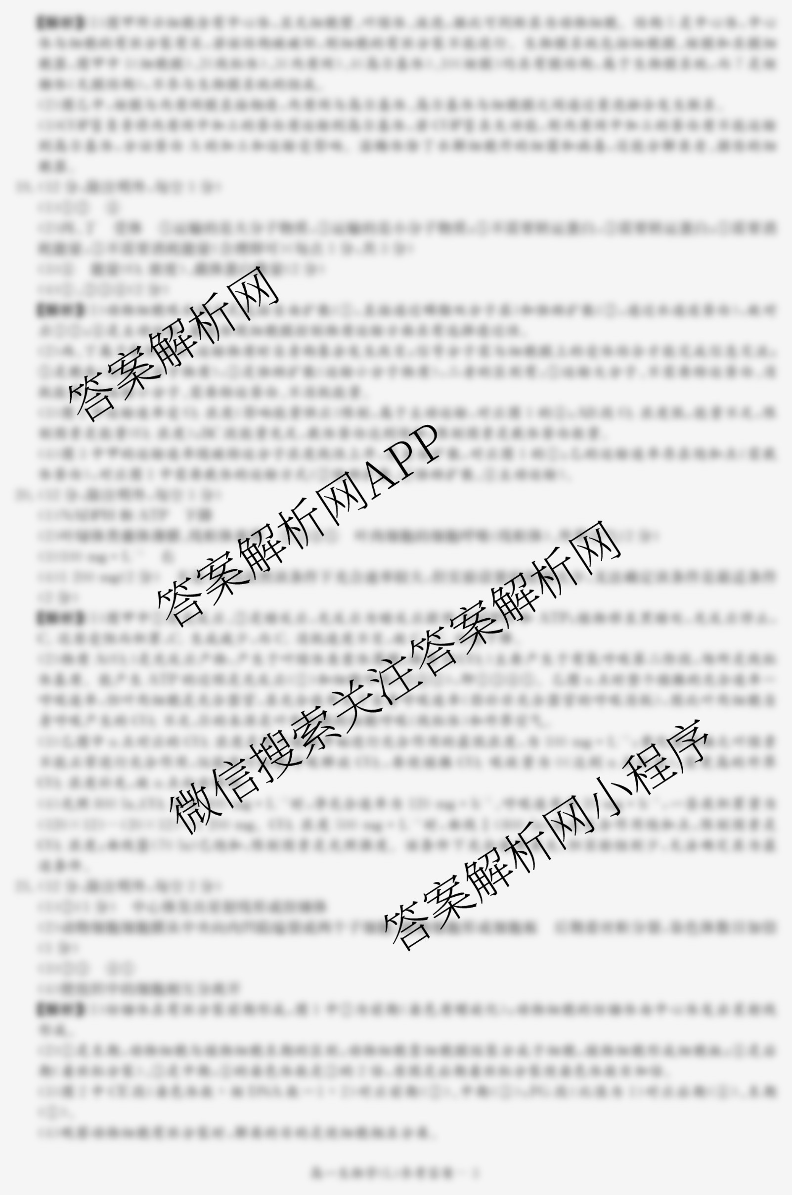 - [炎德英才大联考]·2026年(高一)期末考试(1.26)生物(N)答案