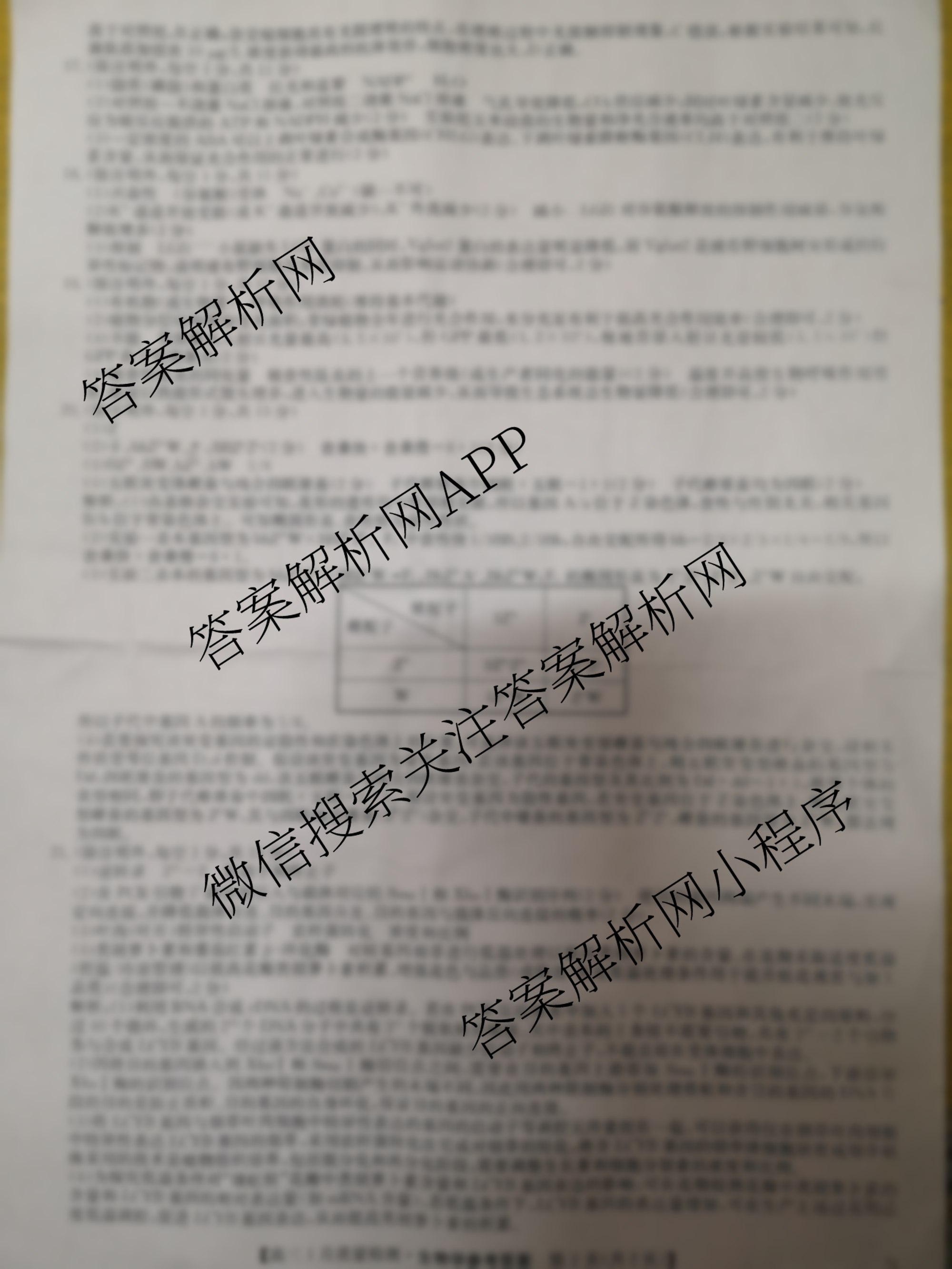 - [高三]九师联盟2026届1月质量检测(1.28)生物(FJ)答案