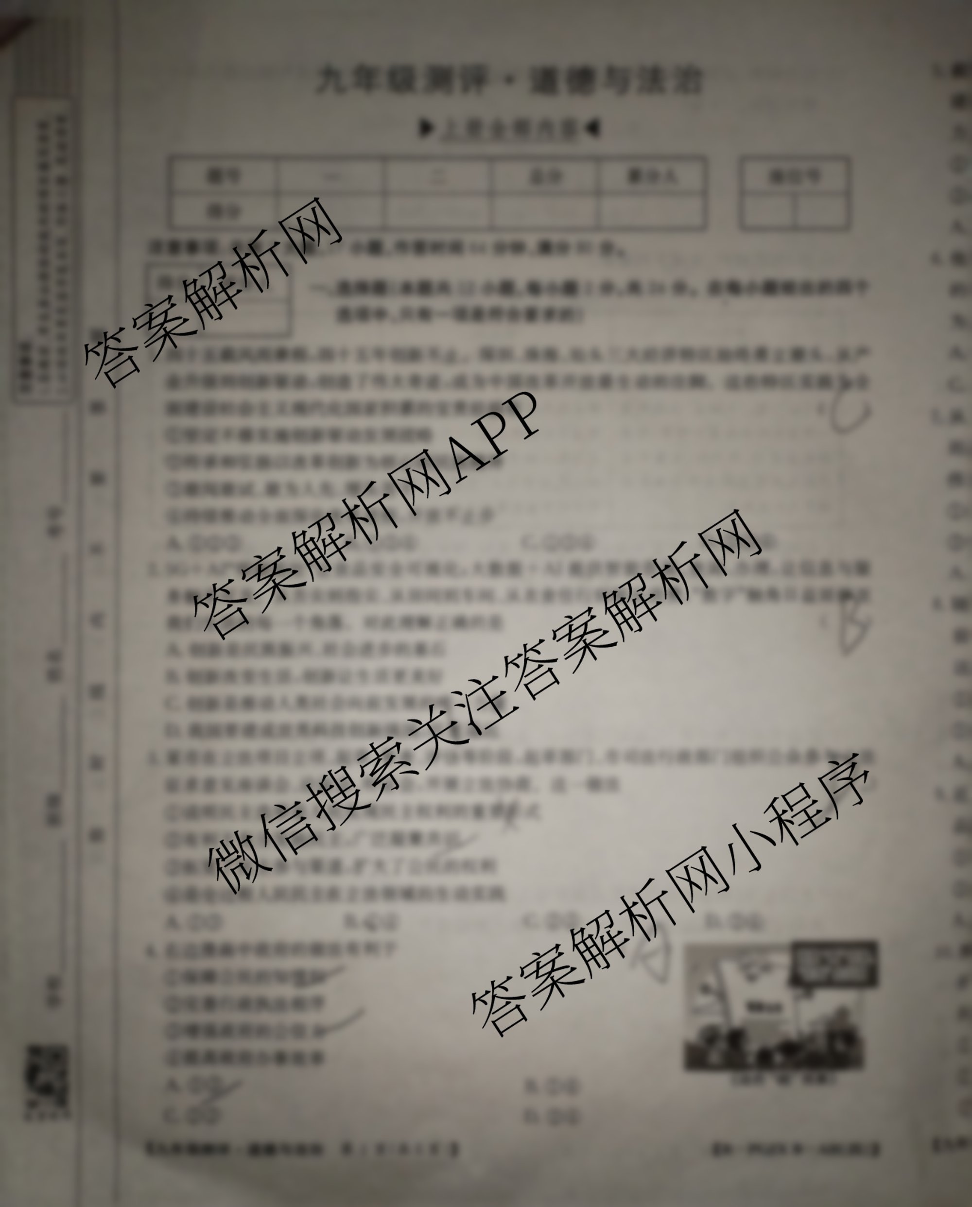 - [九年级]安徽省2025-2026测评[PGZXB-AH(四)]道德与法治(R)答案