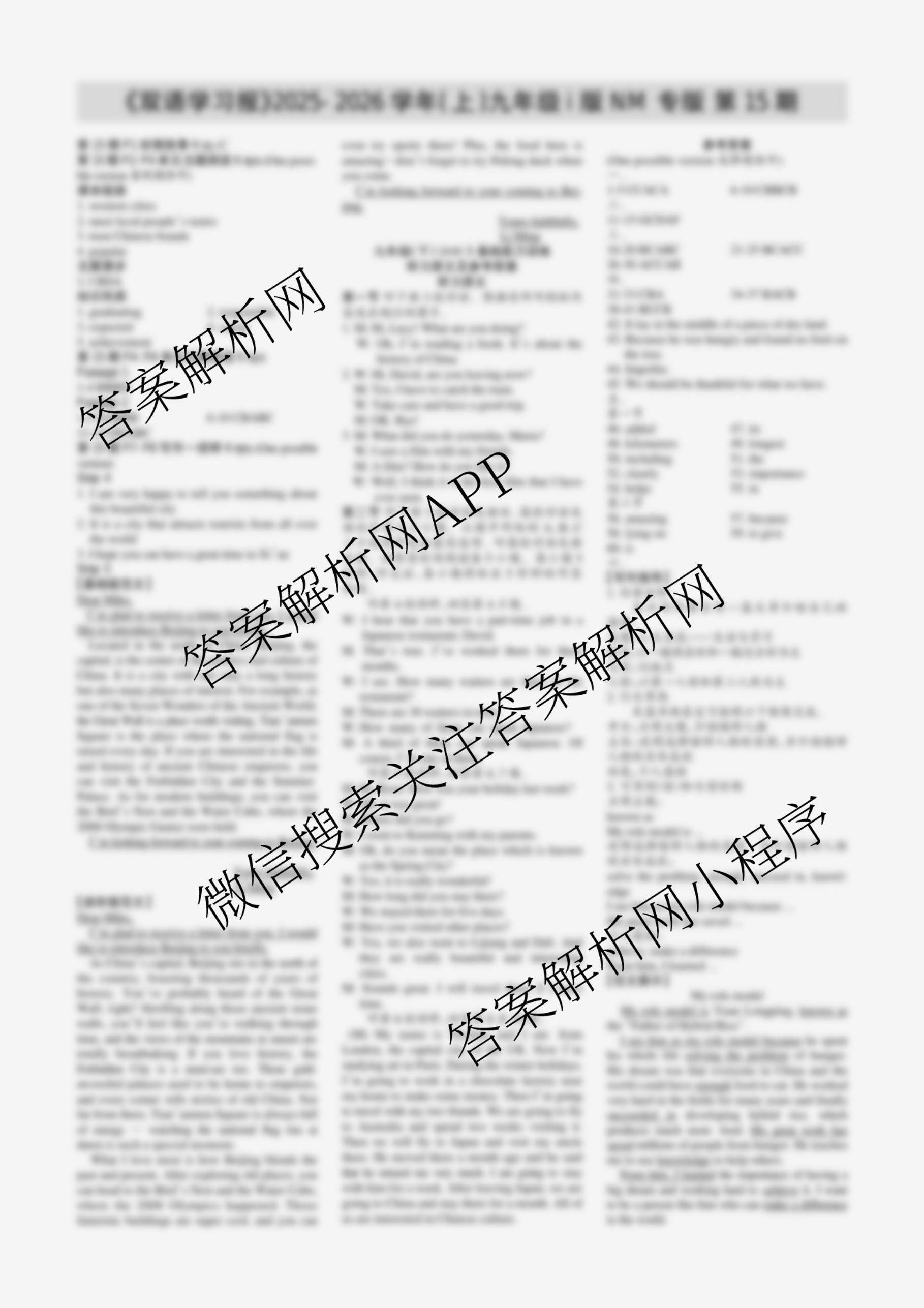 2025-2026 双语学习报 九年级 i版NM专版第15期答案