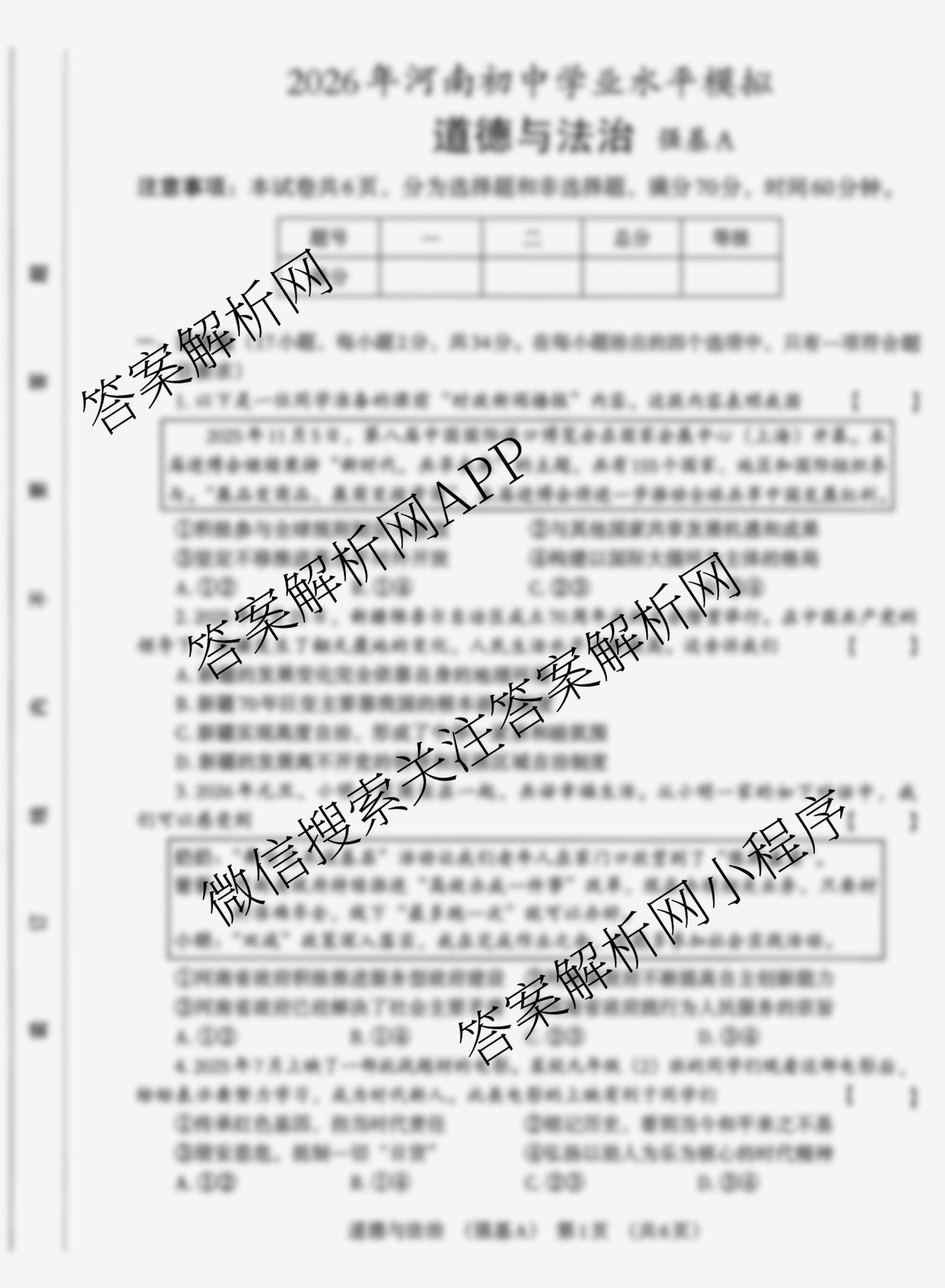 - (九年级)[明思]2026年河南初中学业水平模拟考试(强基A)道德与法治试题