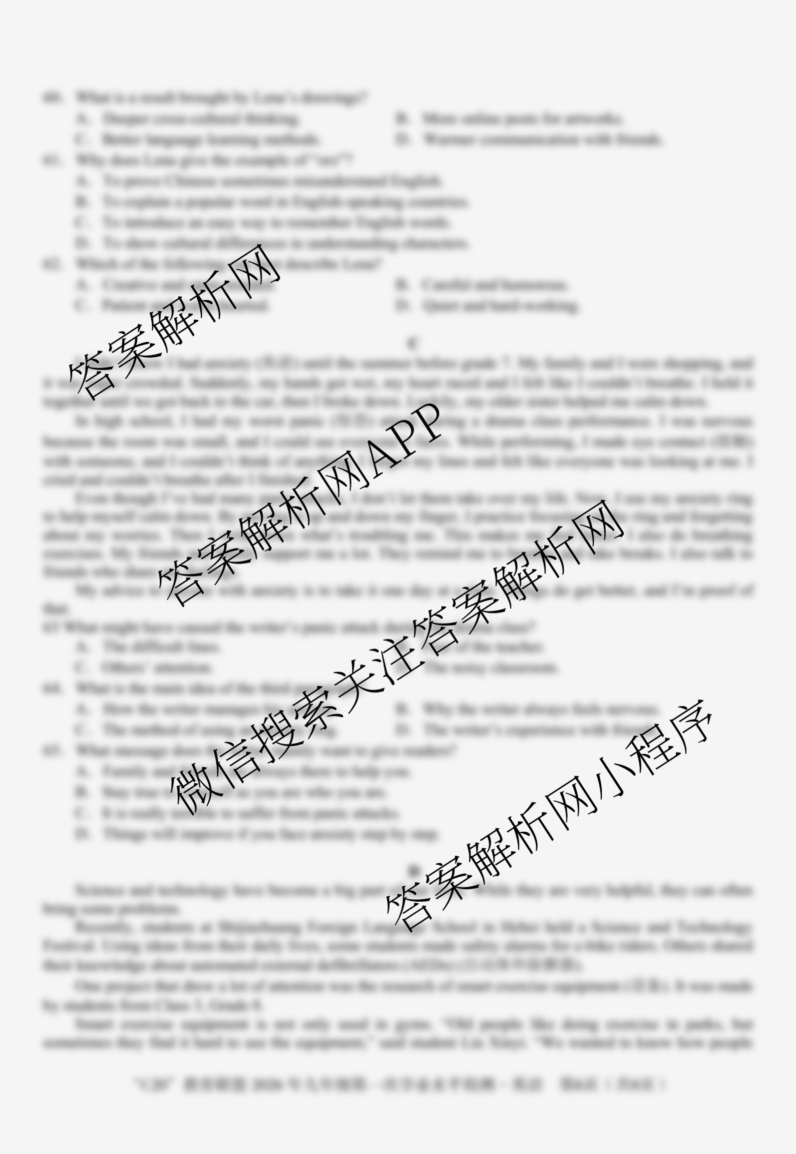 - [九年级]安徽省"C20"教育联盟2026年第一次学业水平检测英语试题