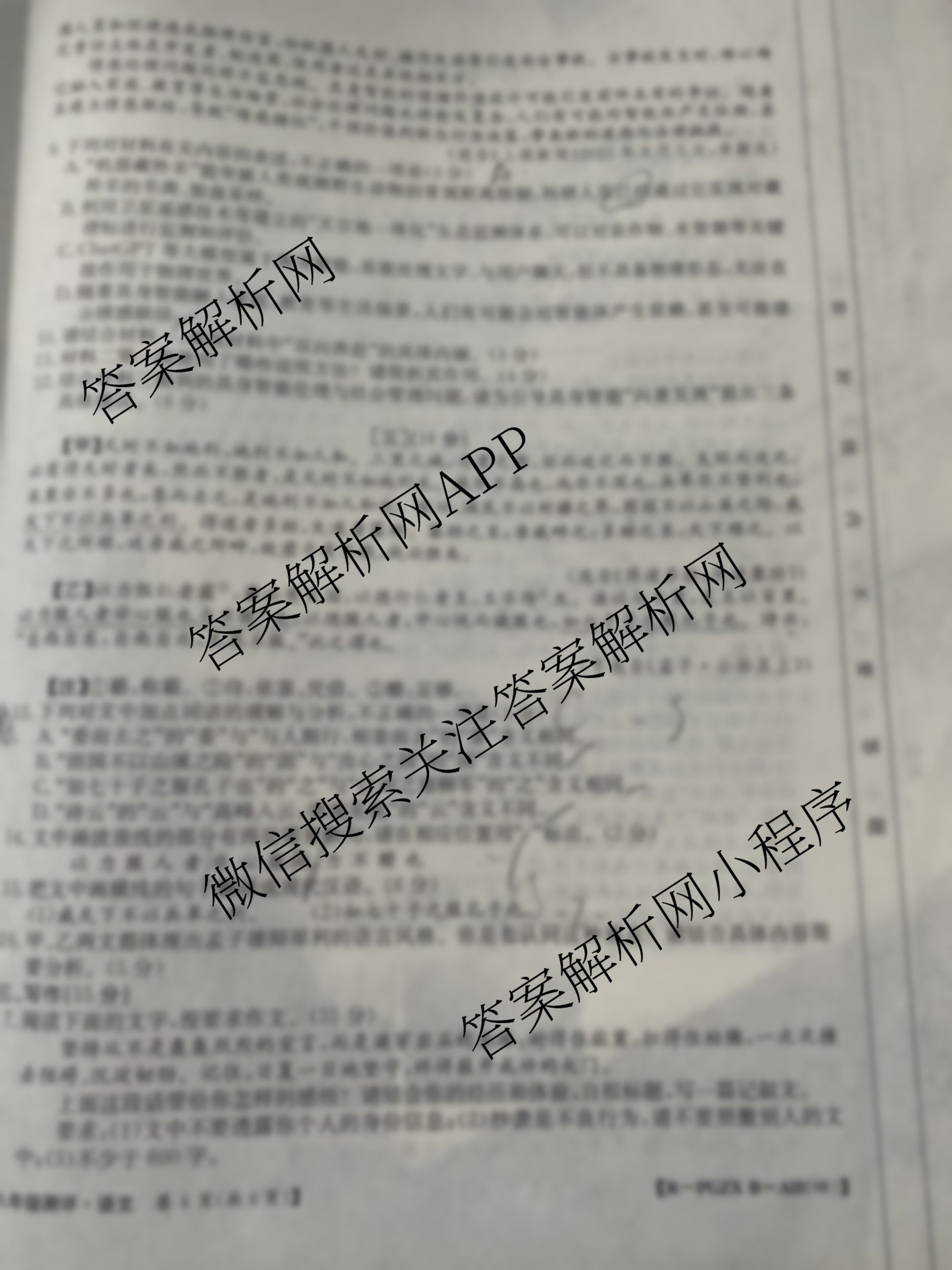 - 2025~2026安徽省学年度[八年级]测评[PGZX·B-AH(四)]语文(R)试题