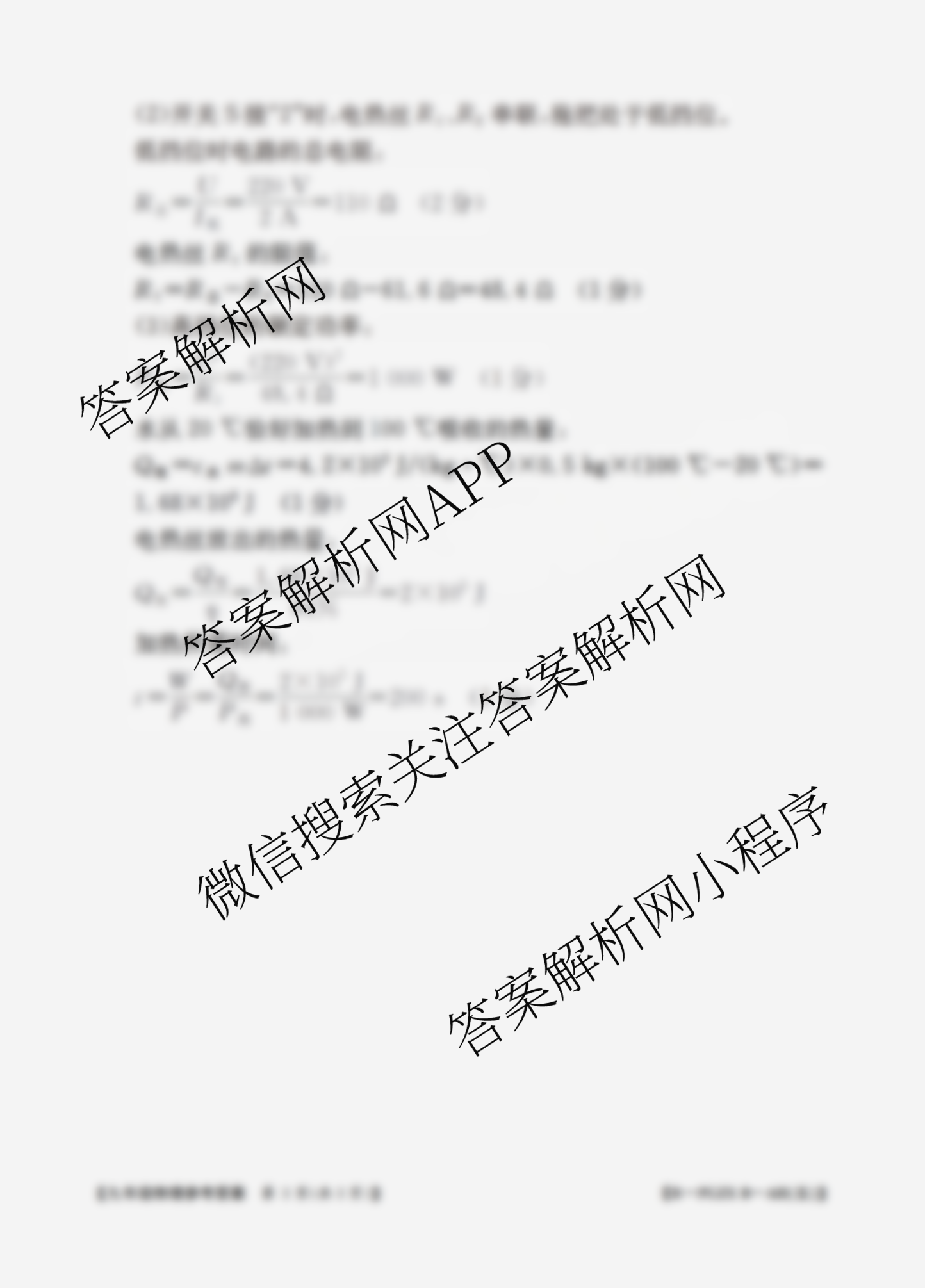 - 2025-2026(九年级)安徽省测评[PGZXB-AH(五)]物理(BSD)答案