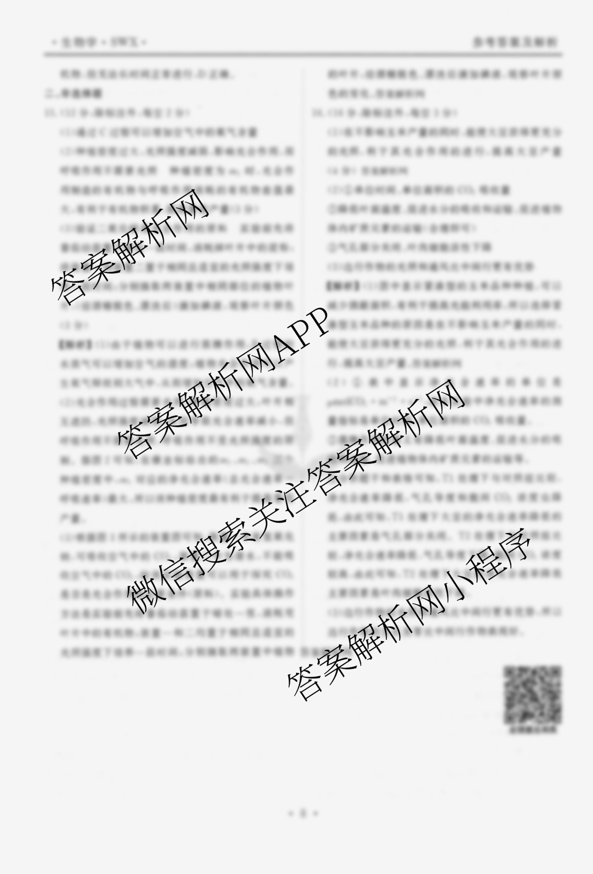2026届衡水金卷先享题高三二轮复习专题卷生物(SWX)(二)2答案