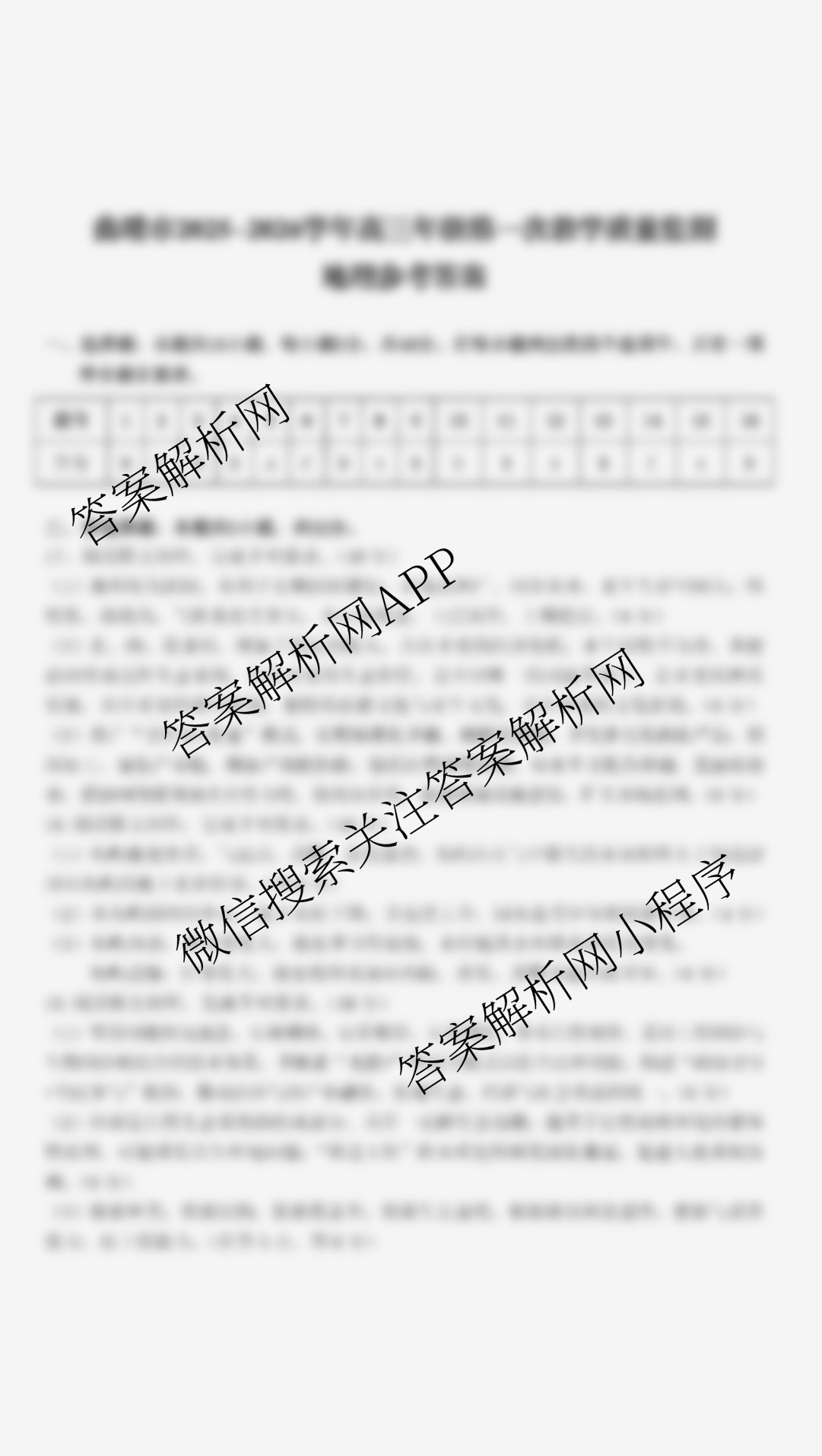 - 2025-2026云南省曲靖市学年(高三)年级第一次教学质量监测地理答案