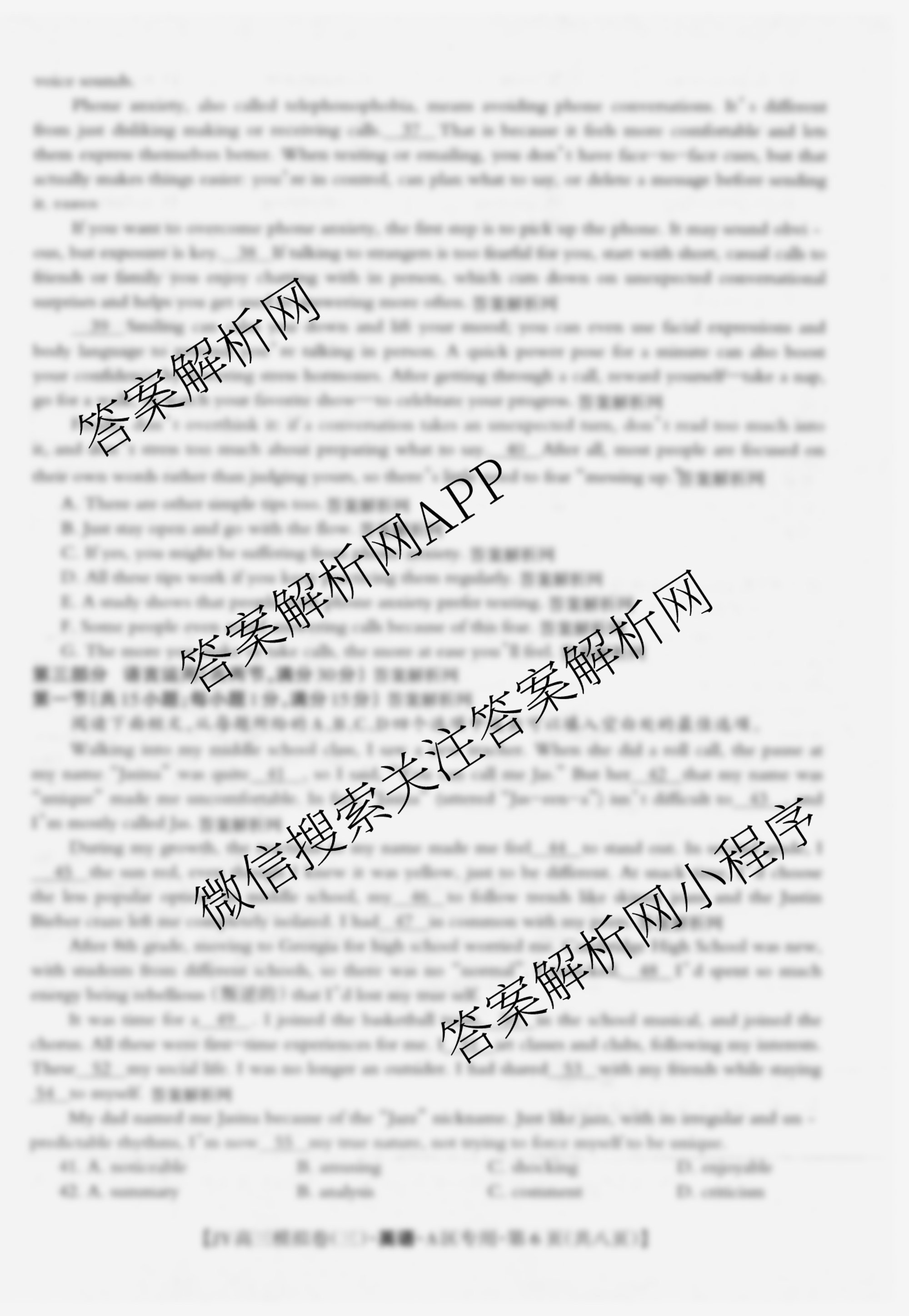 - 2026年普通高等学校招生统一考试·JY[高三]模拟卷(三)英语(A区专用)答案