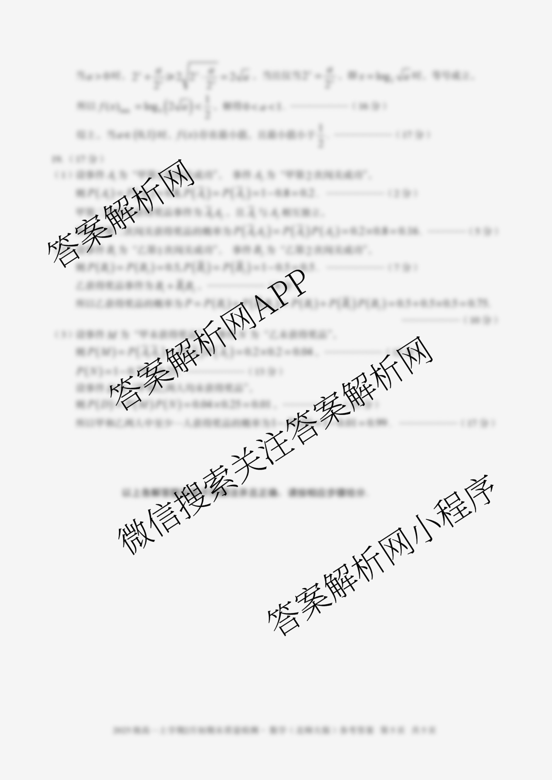 - (高一)安徽省2025级上学期2月初期末质量检测数学(A 人教A版)答案