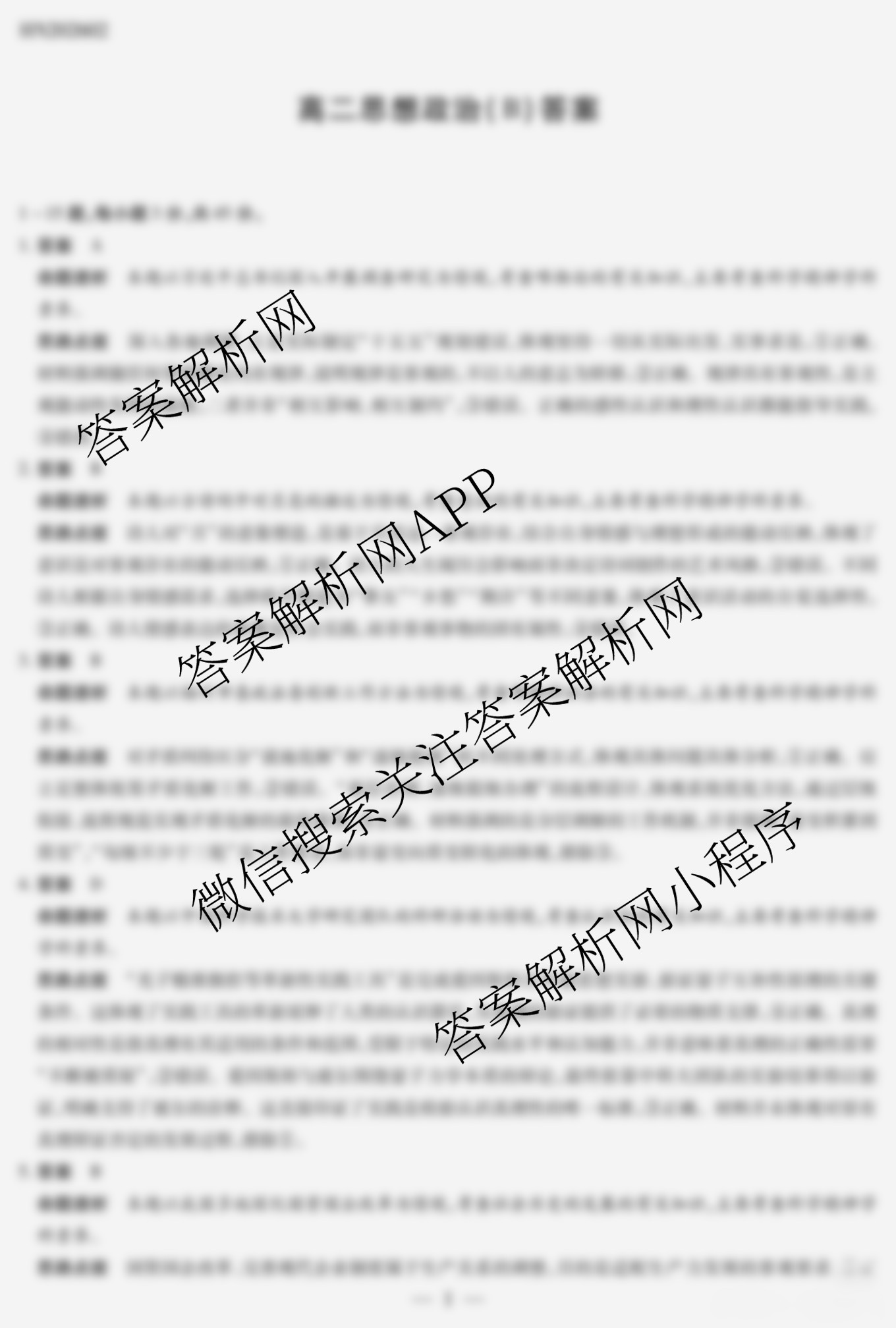 - 2025~2026[高二]天一大联考河南省学年2月联考(HN202602)政治(A)答案