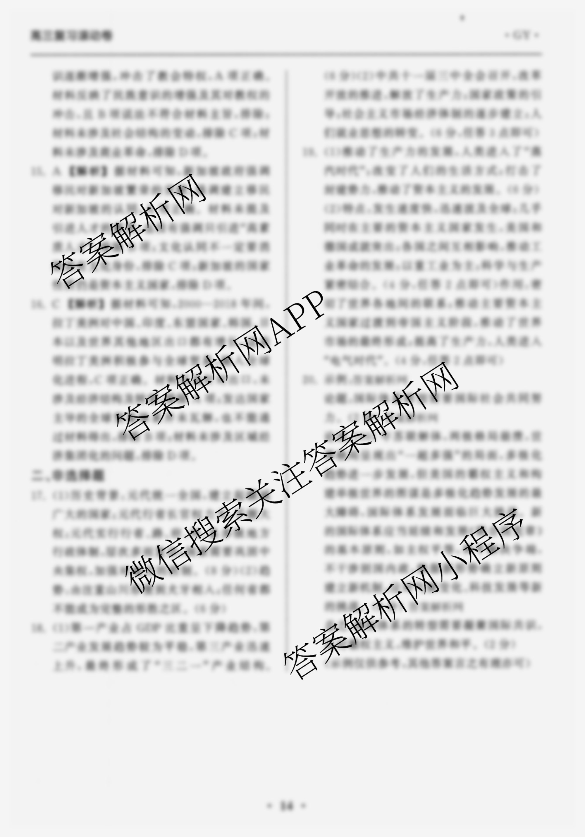 - (衡中同卷)2025~2026学年度高三复习滚动卷(四)4历史(GY)答案