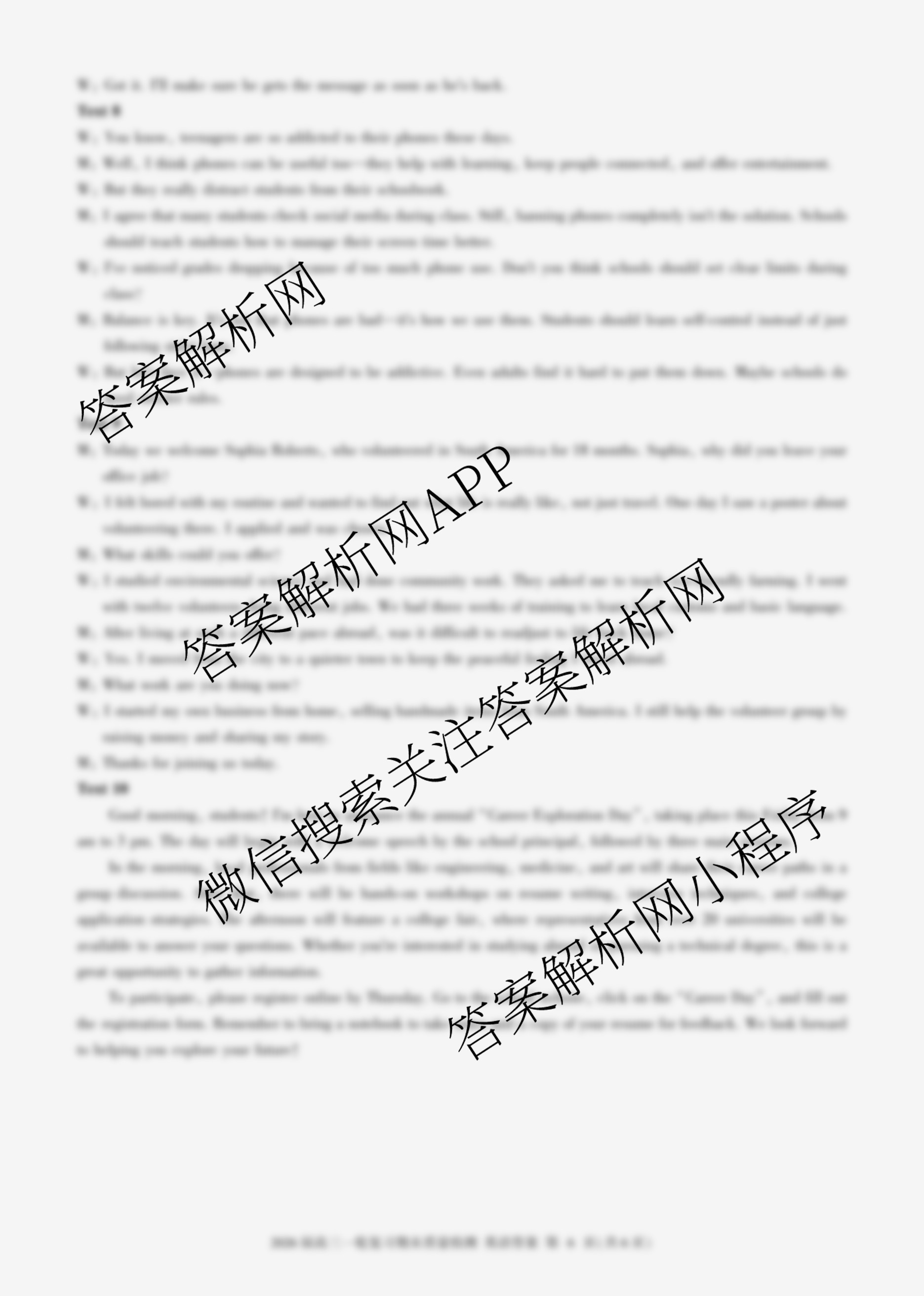 - 2026届[高三][百师联盟]·一轮复习期末质量检测英语(百B)答案