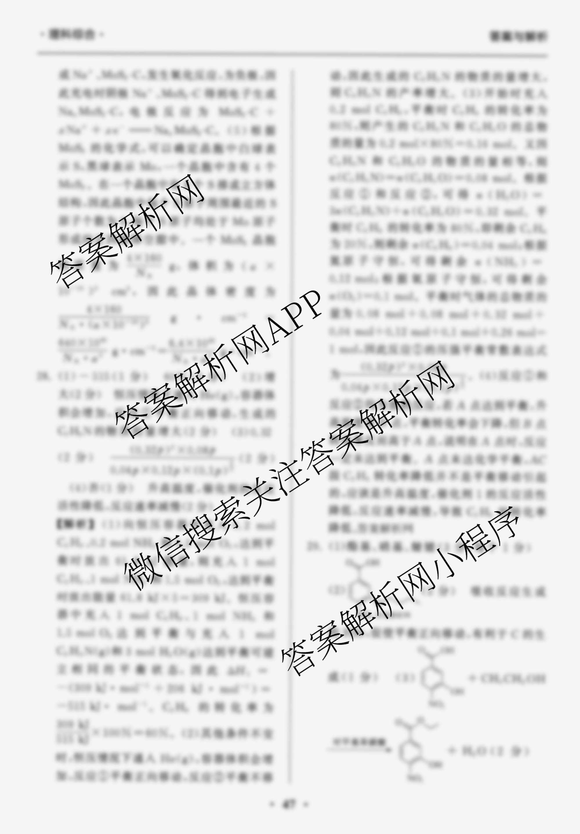 - [高三]天舟高考[衡中同卷]2026年普通高中学业水平选择性考试模拟调研卷(五)5化学(WG)答案