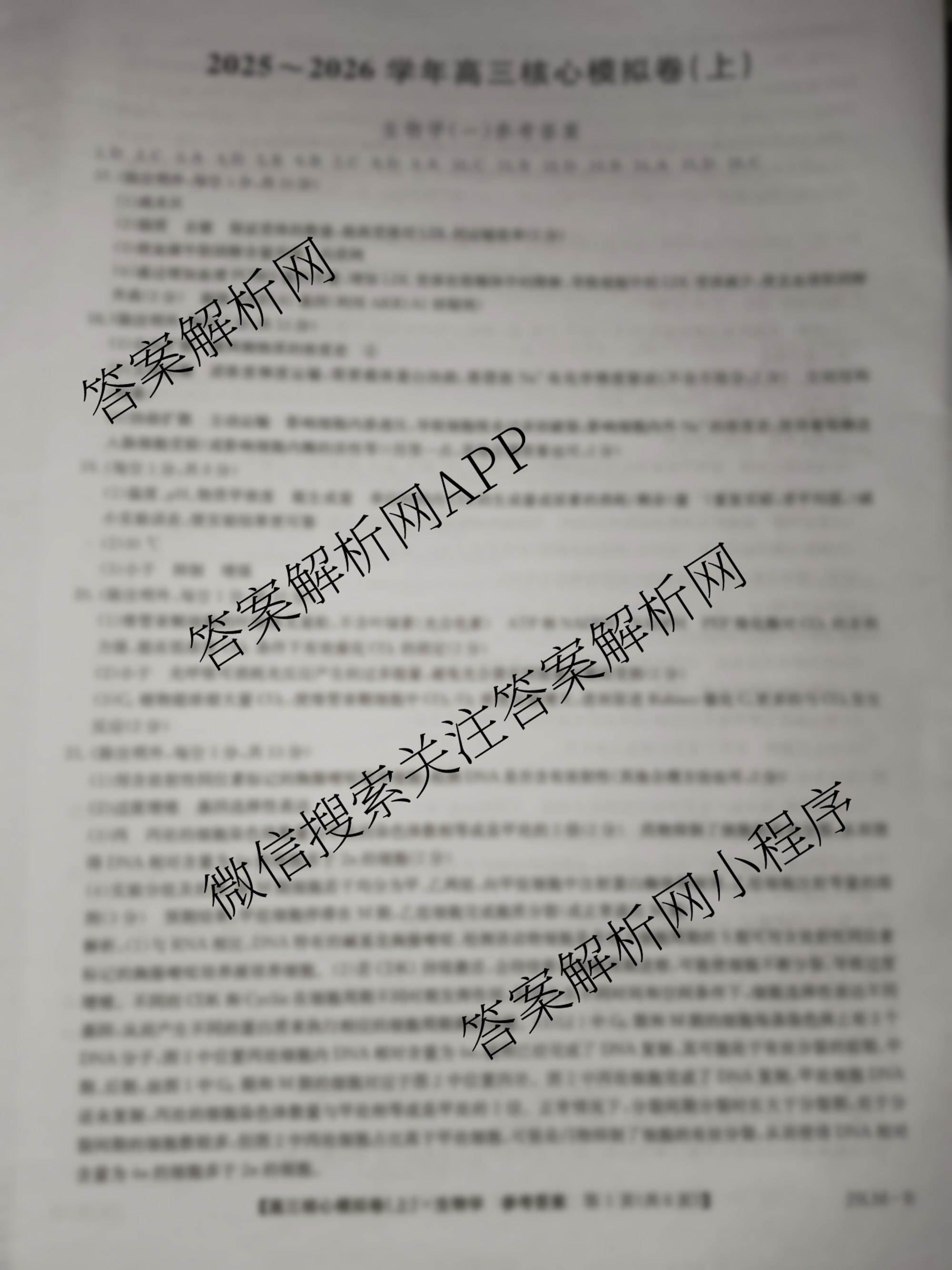 - [高三][九师联盟]·2025~2026学年核心模拟卷(上)(一)1生物(A)答案
