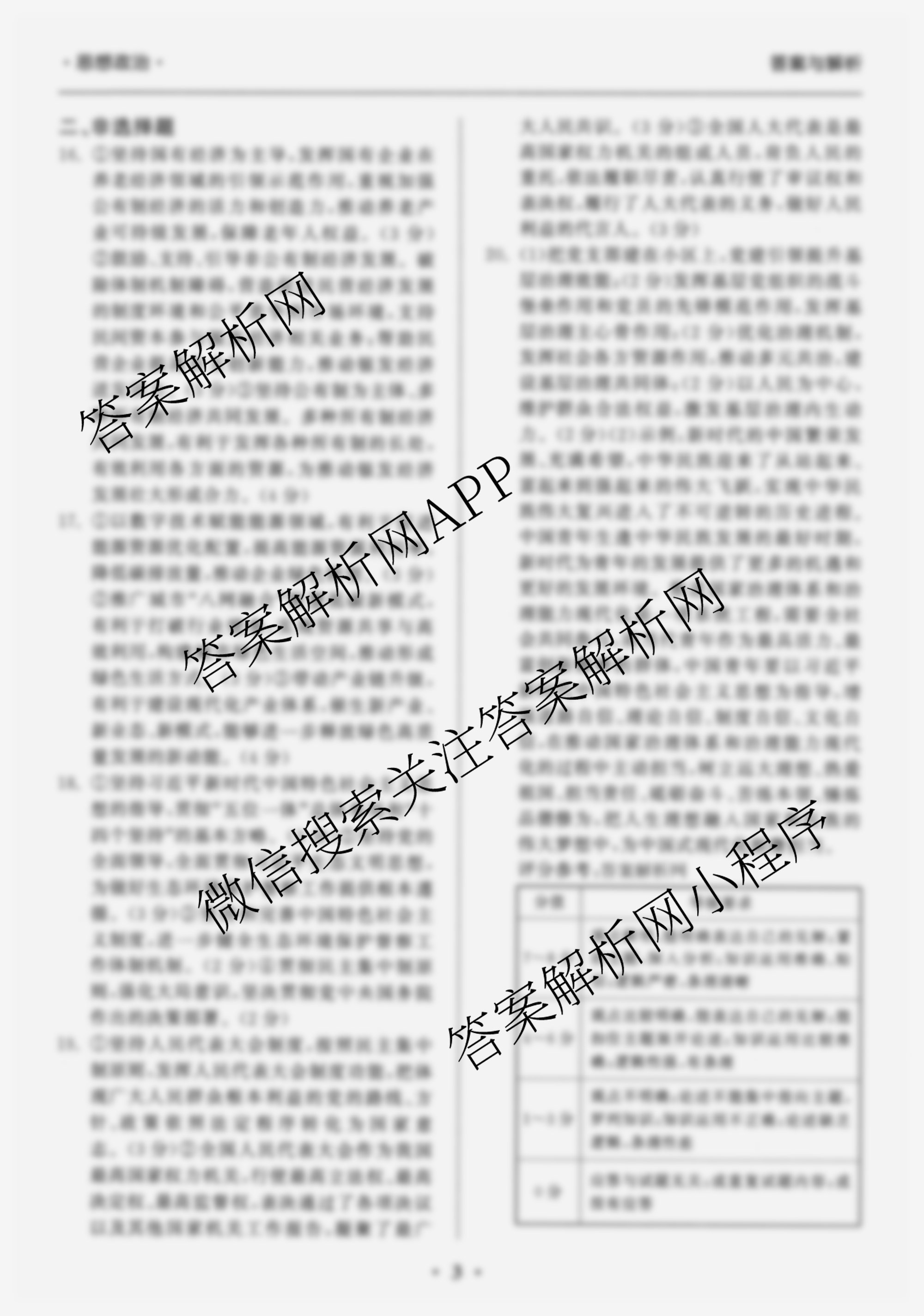 - (衡中同卷)2025~2026学年度(高三)复习滚动卷(一)1政治答案